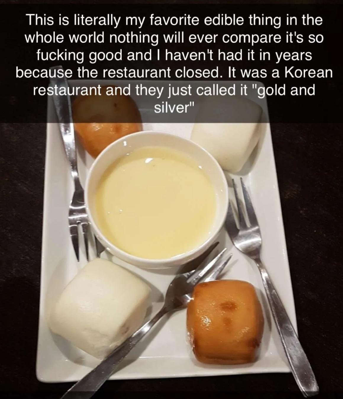 This is not Korean. That’s fried and steamed mantou and condensed milk.