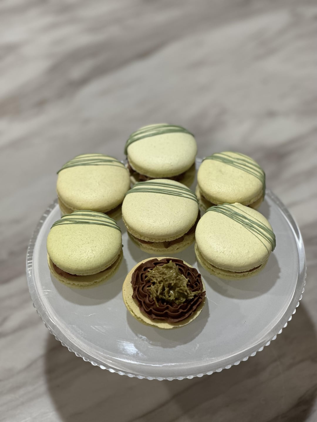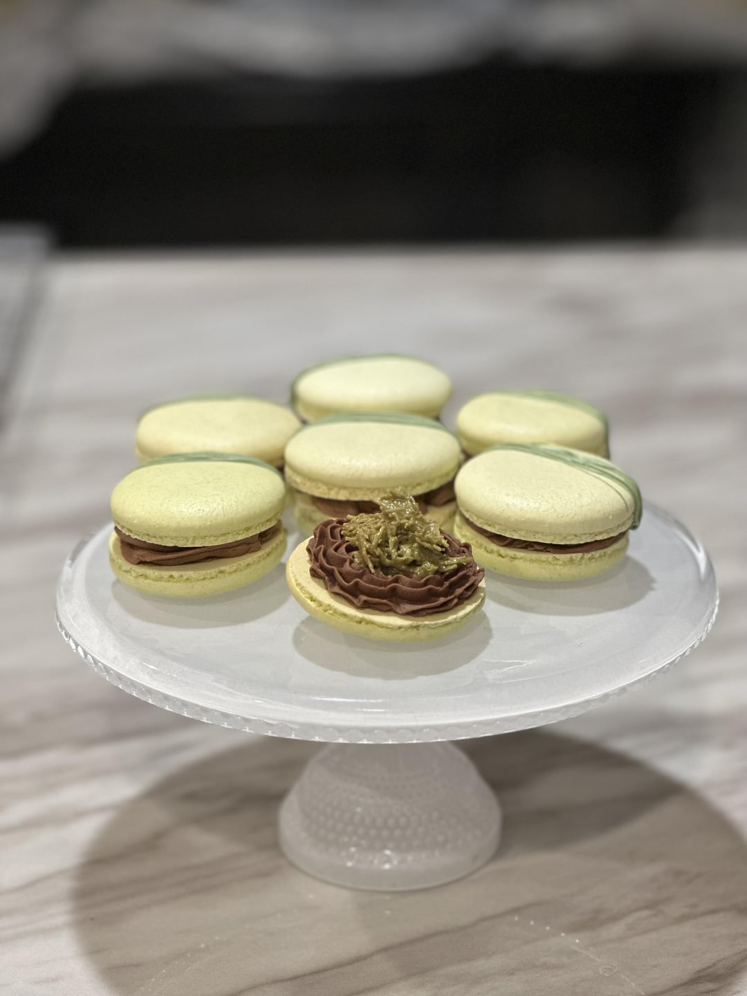 I’m not much of a chocolate bar person but I wanted to find a way to try this ‘viral’ flavor. So why not in a macaron.Chocolate frosting with pistachio filling centerReally easy and pretty good! by Sad-Potato-1818 Write A CommentYou must be logged in to post a comment.