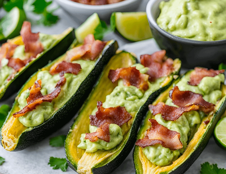 * 2 medium zucchinis 🥒 * 1/2 cup shredded cheddar cheese 🧀 * 1/4 cup cooked and crumbled bacon 🥓 * 1/4 cup sour cream 🍶 * 1 tbsp chopped green onions 🌿 * Salt and pepper to taste 🧂