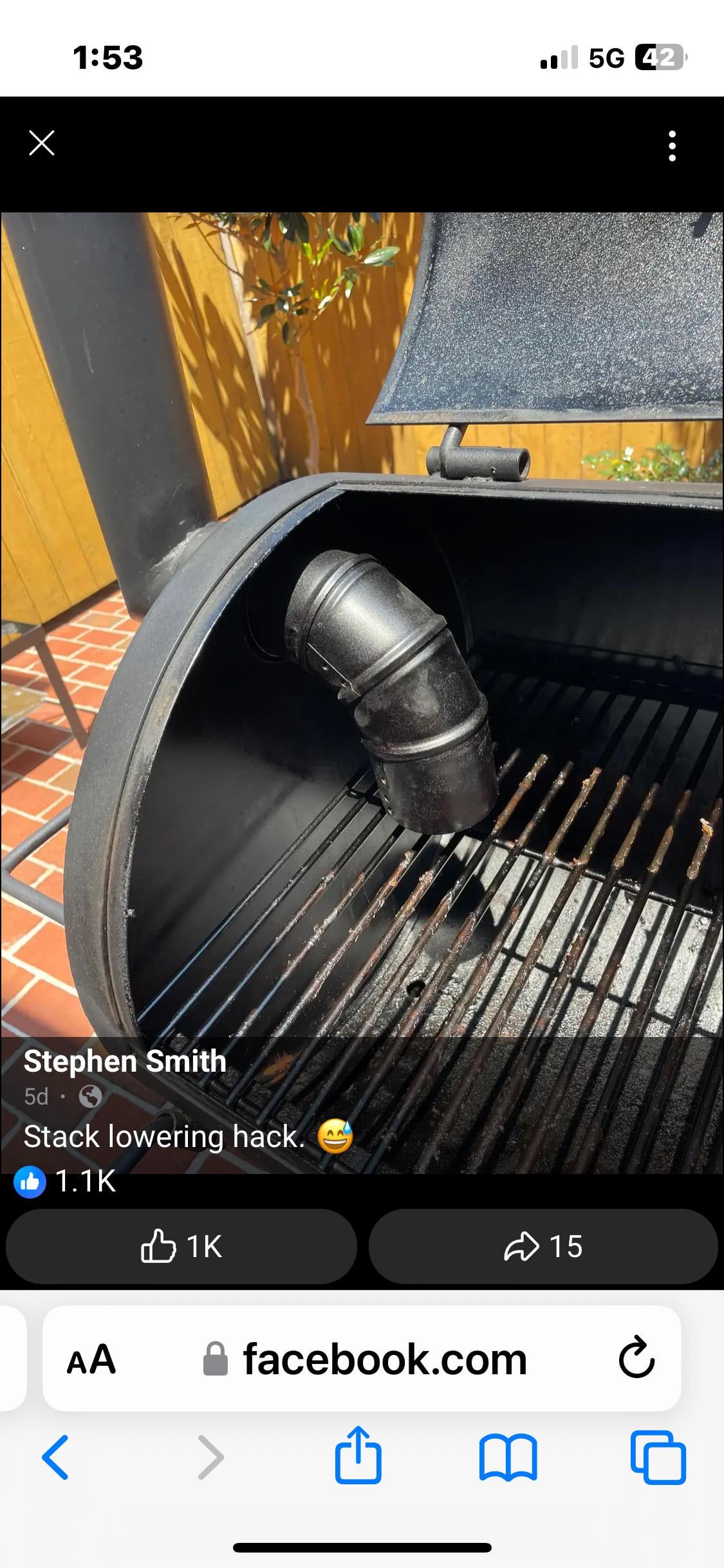 5. People think that chimneys that start at the top of the barrel allow the smoke to escape quicker but they don’t realize the smoke has traveled already from one end of the barrel to the other and if you alter where the stack comes in you’re very likely changing the air flow into ways that it was not designed. It could actually make the cooker less efficient, let alone reduce your actual usable cooking space.