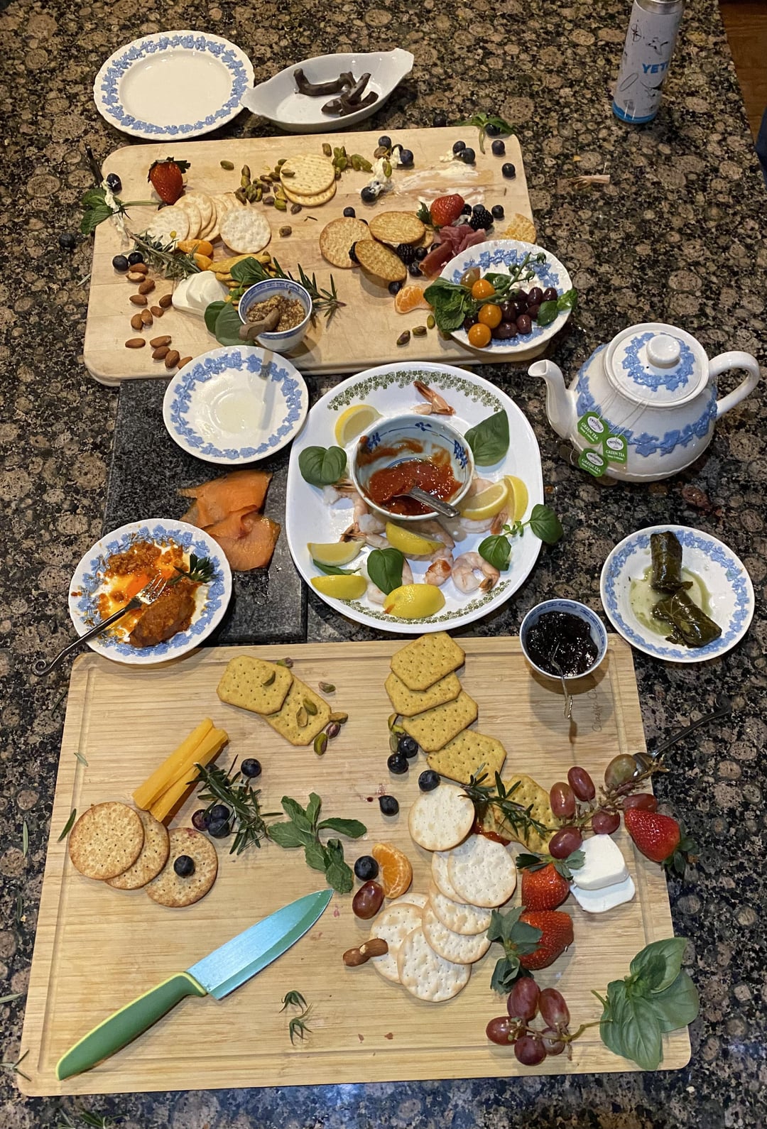 For the life of me I cannot remember or figure out what that is on the small plate under the shrimp to the right of the dolmas! That’s going to drive me crazy – otherwise, really proud of this spread!