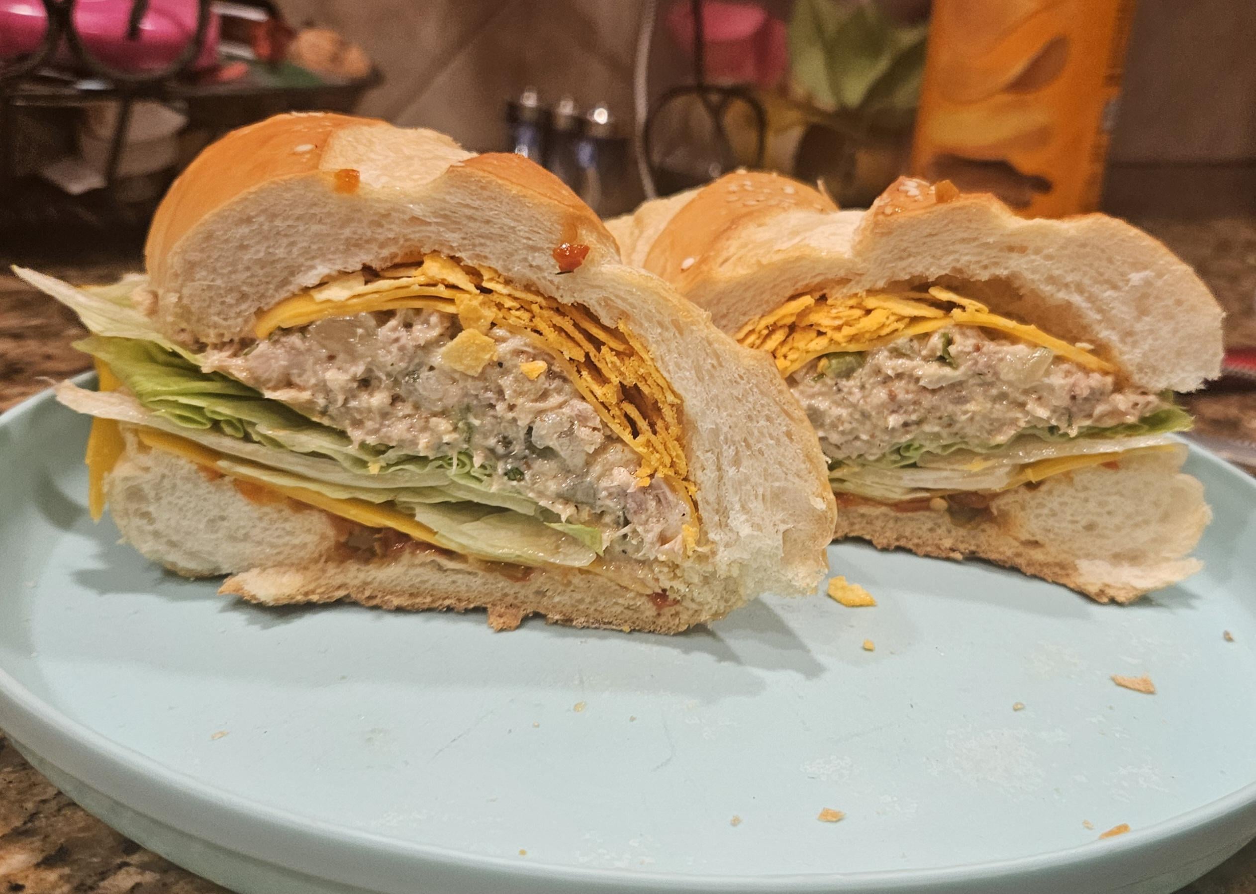 Tuna salad, chips, cheddar, lettuce and hot pepper spread on low quality italian bread 👍💯 by shroomenheimer 4 Comments thatmortuaryguy 1 year ago Smort!!! qainspector89 1 year ago Looks good 50mHz 1 year ago I like this but I’m a sauce top person; I like it to hit later. So maybe chips, cheese bottom? SomalianRoadBuilder 1 year ago This isn’t necessary with thicker chips or non-chicken salad sandwiches or if you have proper construction and don’t put the cheese next to the breadWrite A CommentYou must be logged in to post a comment.