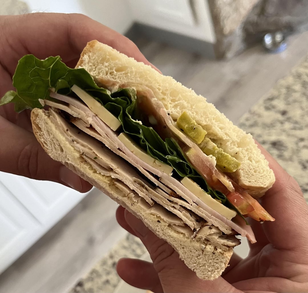 Husband (pic 2): turkey, ham, pepper jack, tomato, lettuce, Jalapeno, mayo/dijon on whiteMine (pic 1): turkey, chicken, pepper jack, tomato, lettuce, mayo/dijon on white by hellerinahandbasket 1 Comment fillerupbruther 1 year ago Hair on the bread made me blow on my screenWrite A CommentYou must be logged in to post a comment.