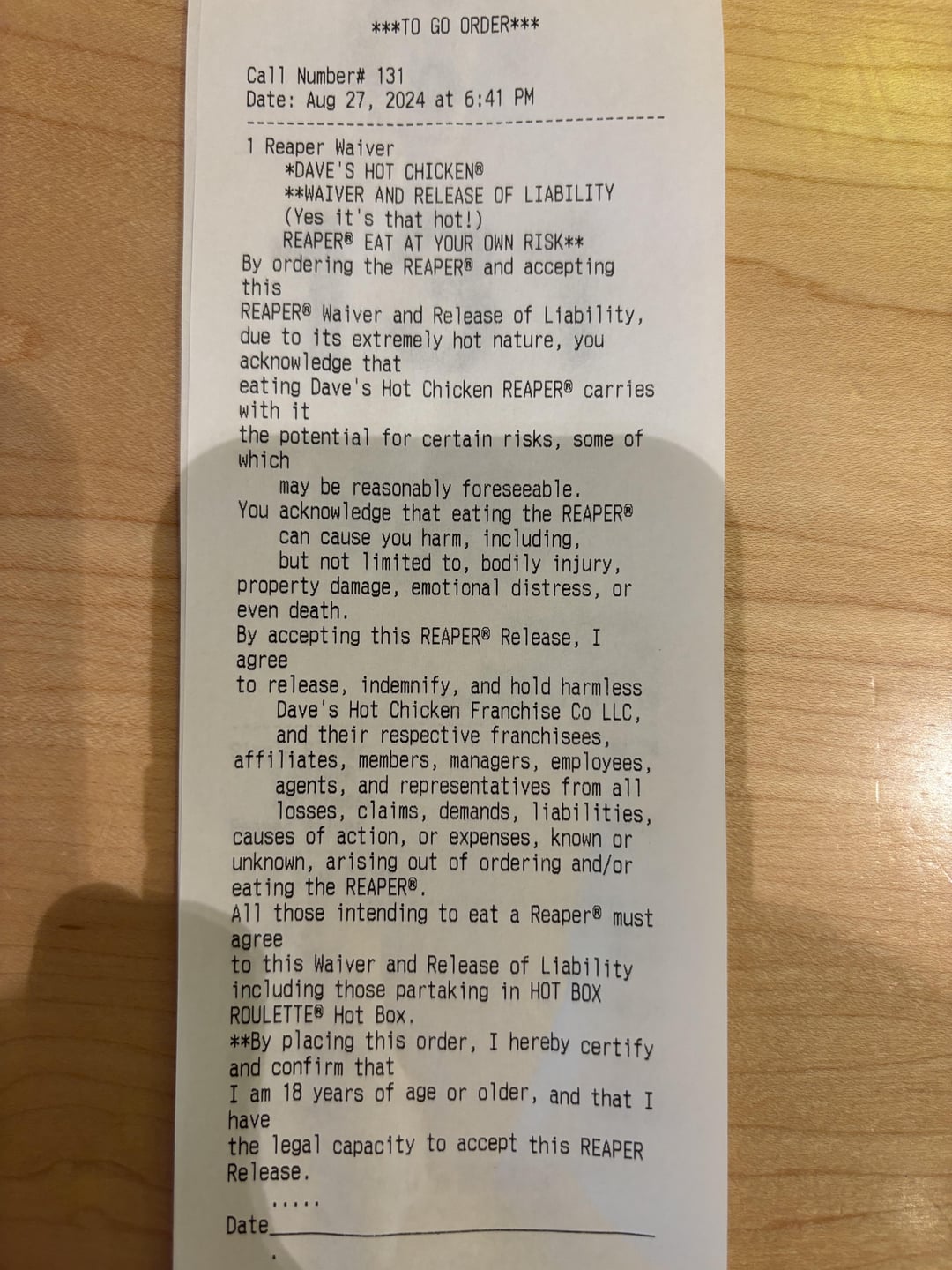 That waiver is to protect them when that sodium and heat has ur heart punching the shit out of ur chest 🤣🤣