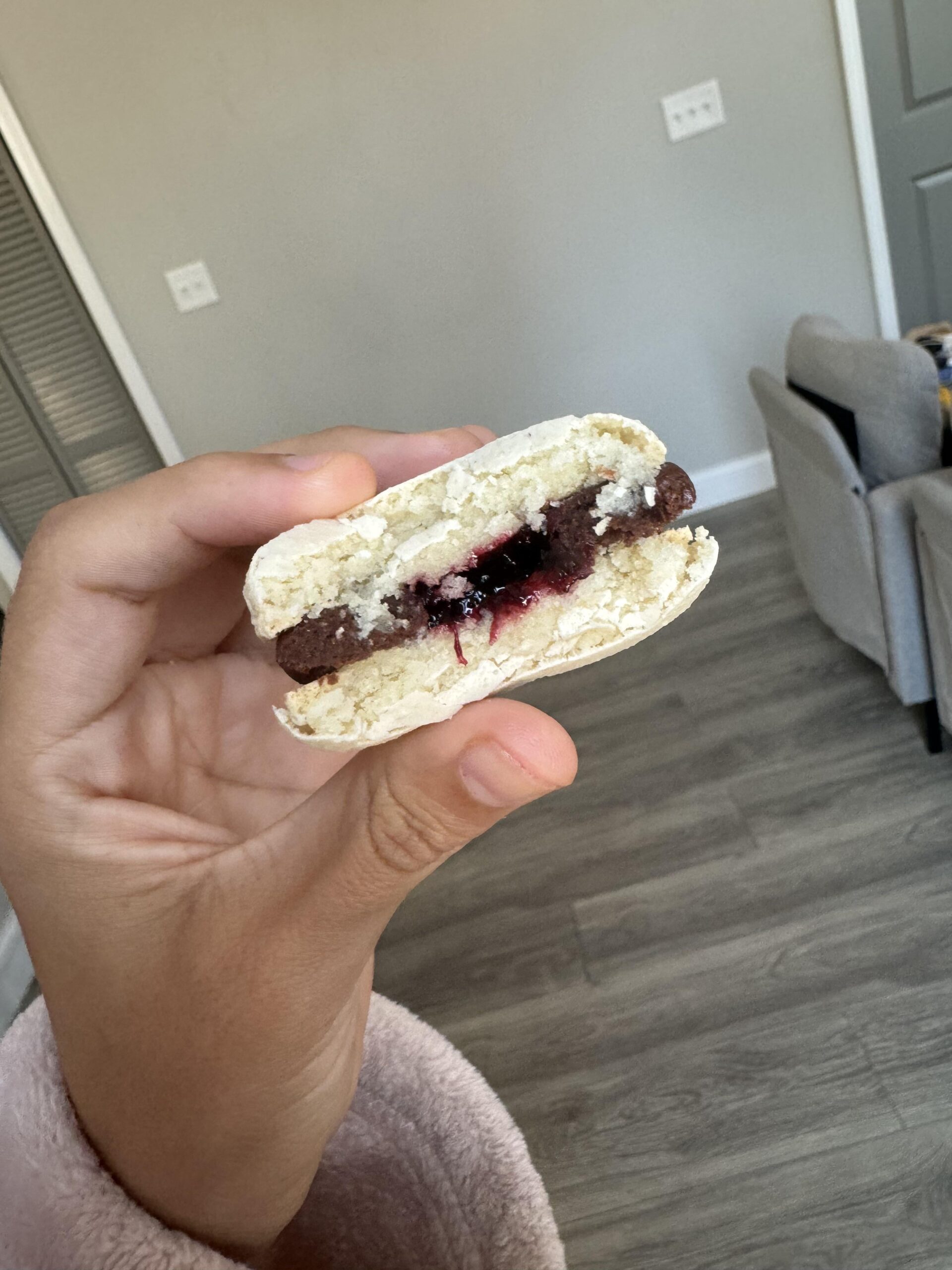 Can you share a top down shot of the top of the shell? Thin or fragile shells (where you can easily put your finger through the shell) can indicate issues during macaronage.