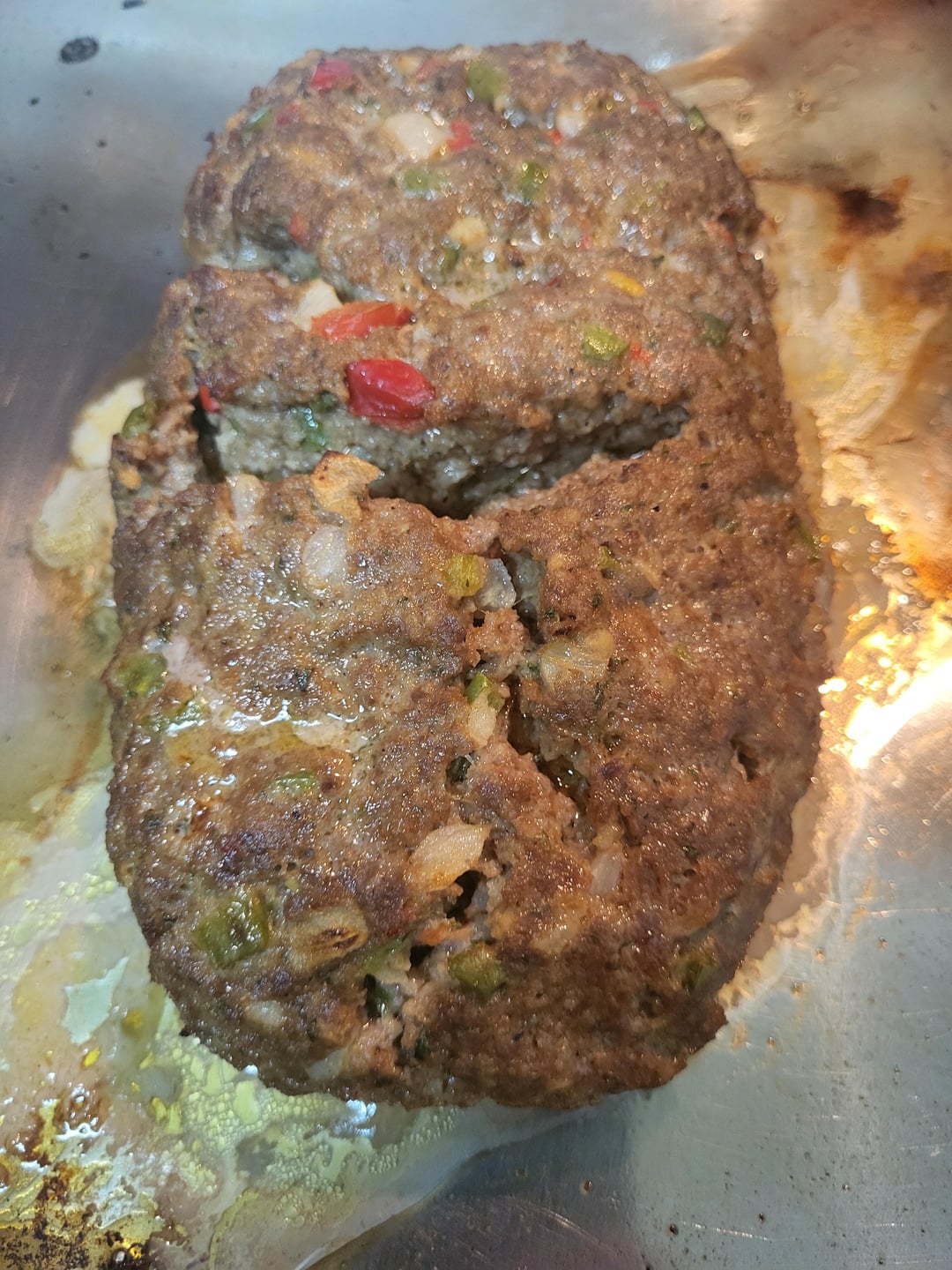 Who TF puts vegetables on a meat loaf? Besides minced alliums and some tomato paste…. I mean it’s called MEAT loaf. Glad it tastes good homey but please don’t call it a Meat loaf