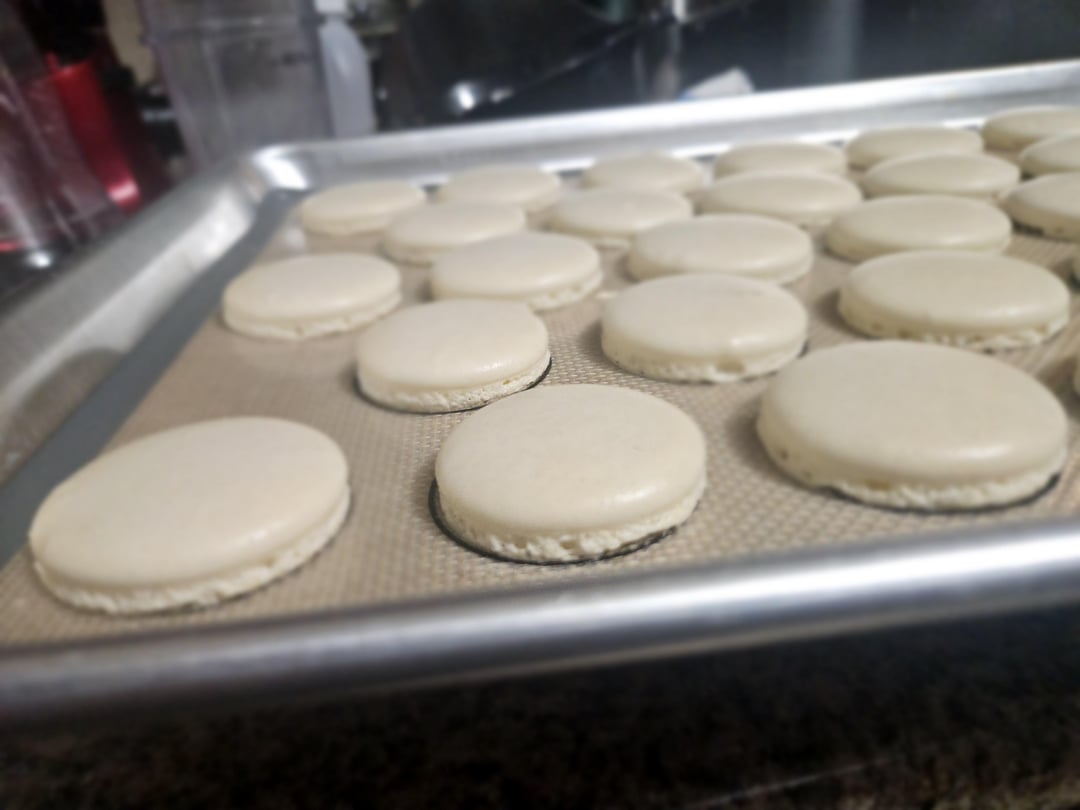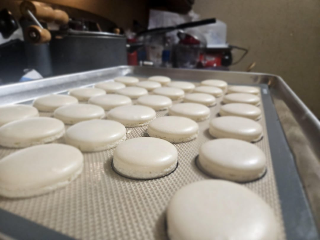 The second batch I stopped the meringue the moment I saw a stiff peak. No further. Took a lot less time. Did the same macaronage steps.