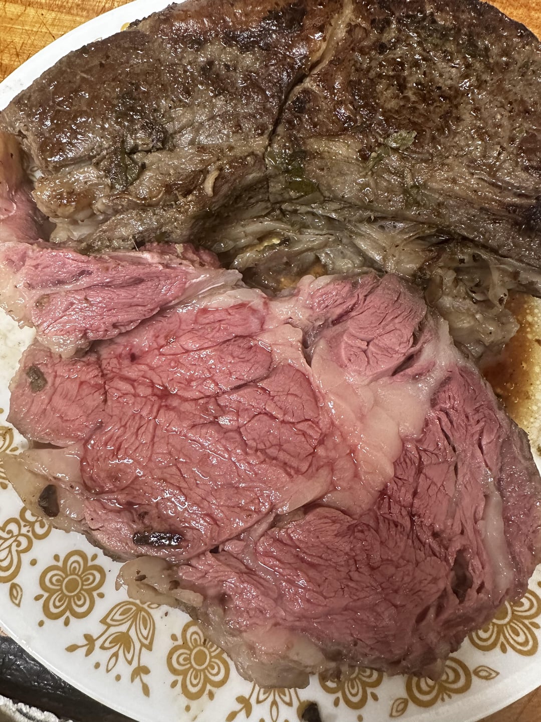 Prime rib, seared in cast iron. Let me know what you think. Always looking to improve ๐Ÿ˜Š