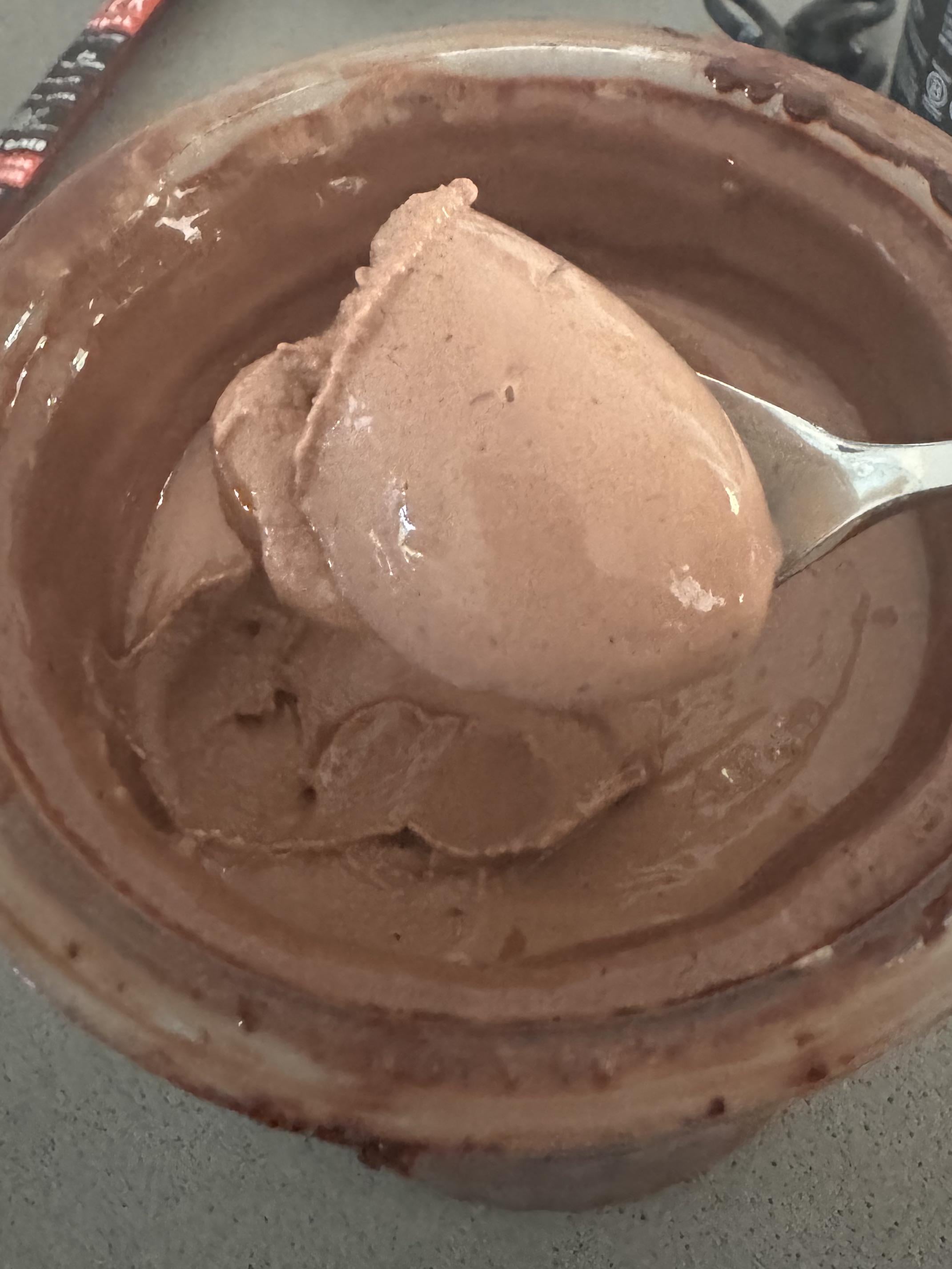 I just got a Ninja Creami. For fun I put a premier protein shake in there (added 2tbsp of good cocoa powder to the 24oz container to amp up the chocolate). No other additions. Ran it on 'lite ice cream' setting TWICE (ie 8 minutes total