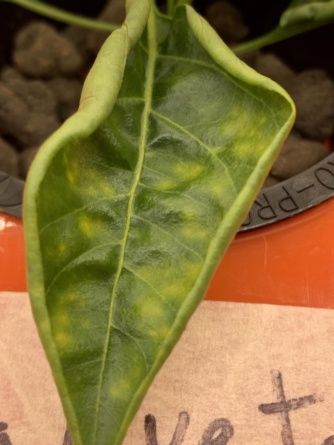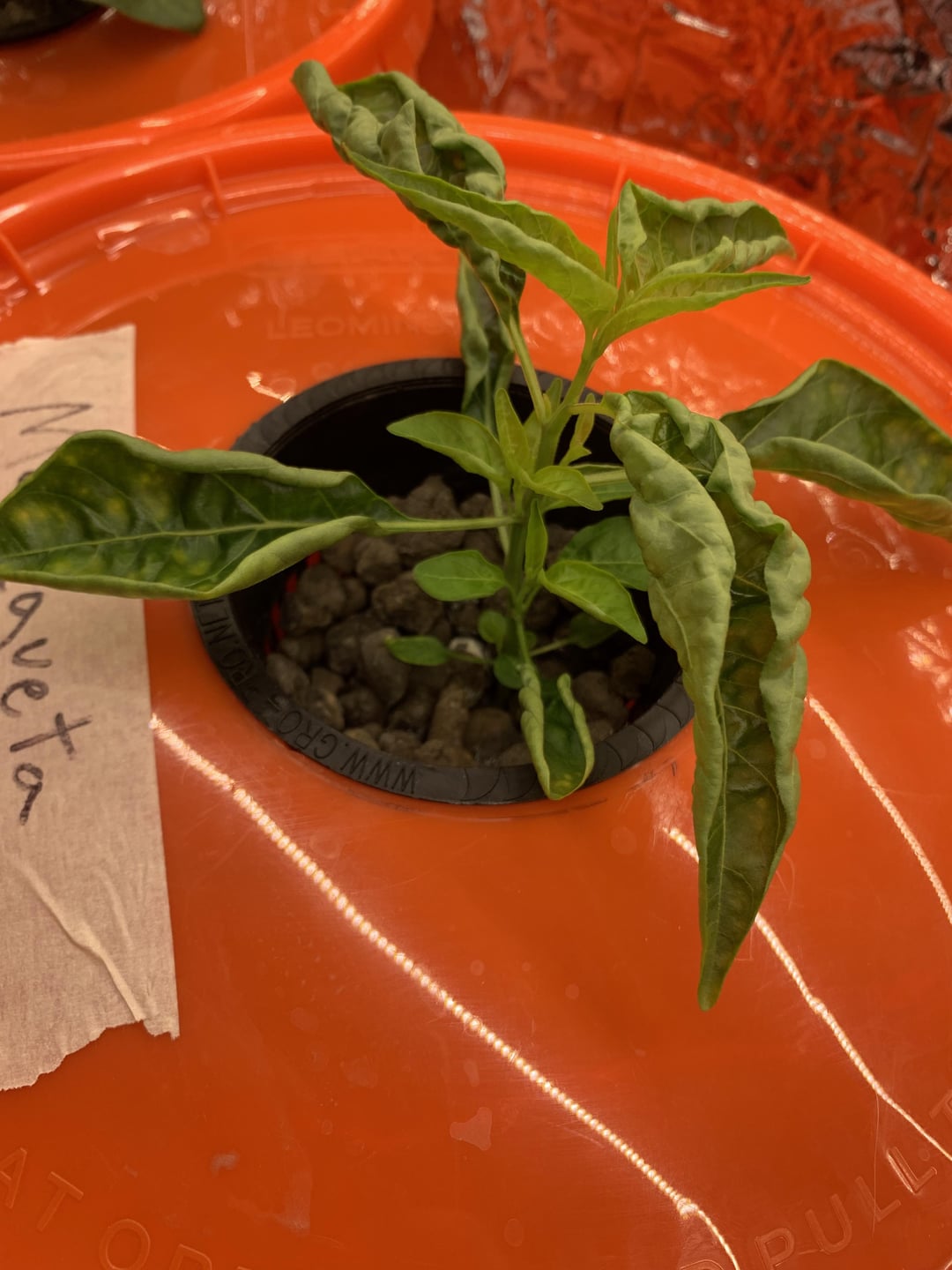 Maybe nutrient deficiency or something? They have a fan blowing on them and plenty of light I think. There’s also an aji fantasy and mad hatter in same set up doing great, although their leaves are getting massive.