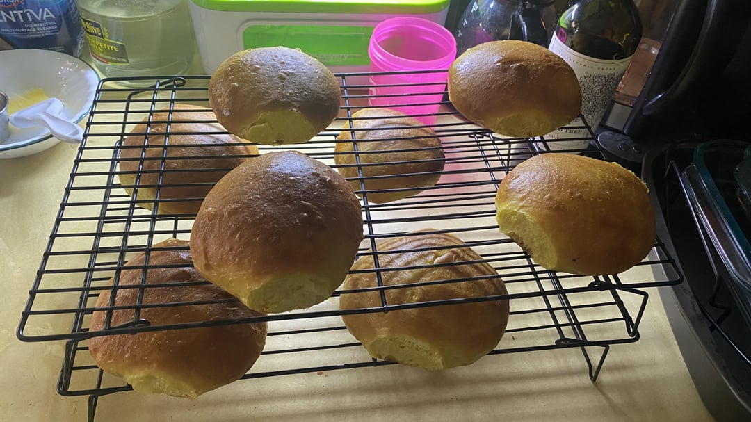 Fresh made brioche buns (the flour was a bit out of date and someone I was cooking for had diverticulitis; they usually look a bit nicer and have sesame seeds on) with thin sliced roast beast, topped with the mushroom, bacon, and red wine cream gravy and sprinkled with Queso fresca/blanco that I also made sous vide.