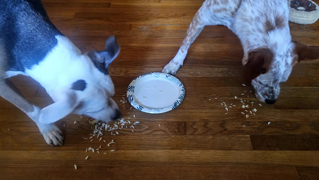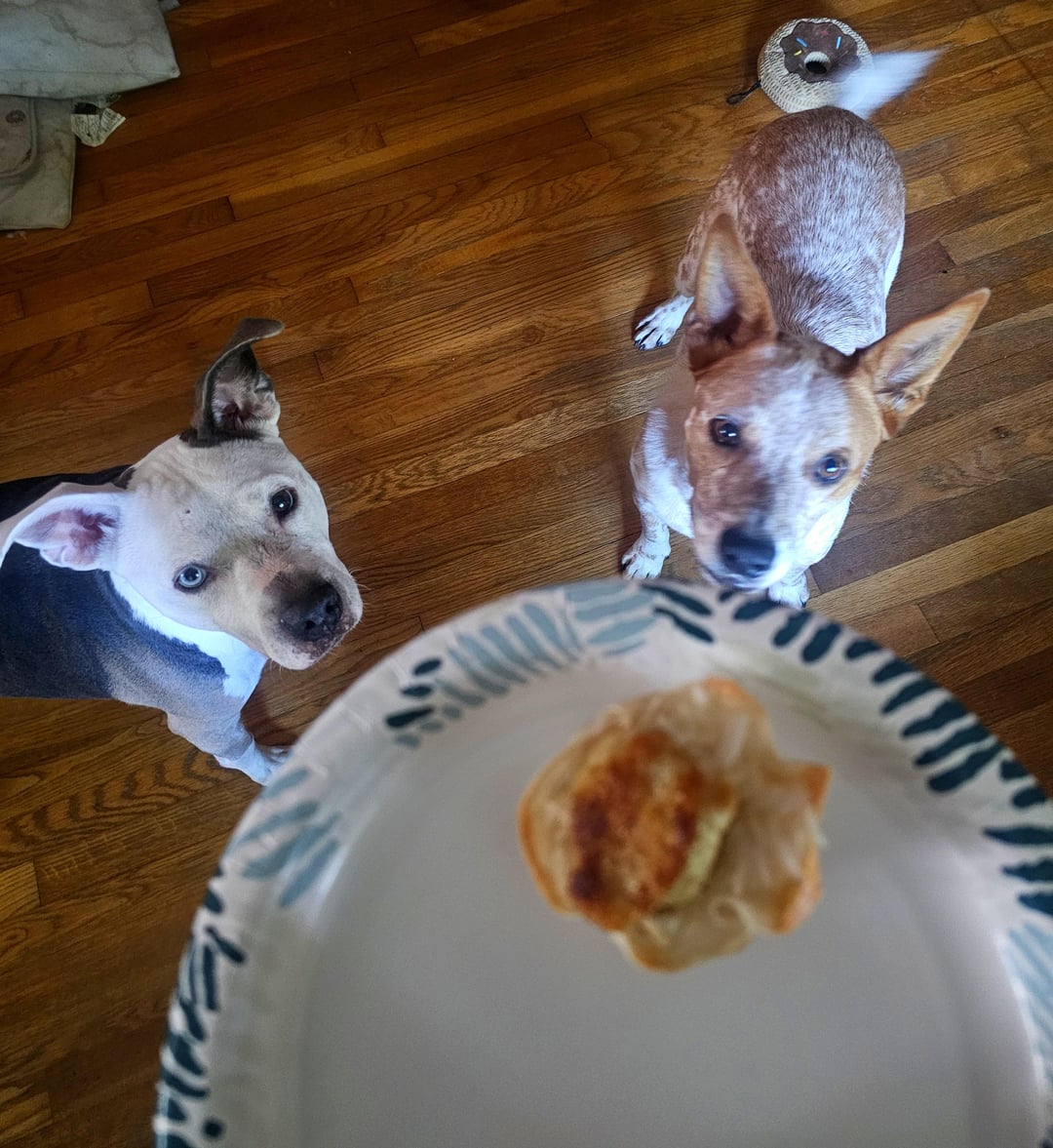 Fill the cups with rice, add meat, drizzle with sauce, and sprinkle some scallions. Now, I'm not a rice person unless it's a Toyota or Nissan 🤣 I just can't eat rice because of how it feels in my mouth. My girl who does it eat suggested adding some chipotle kewpie mayo. So mix some kewpie with some of the sauce from chipotles in adobo until it's spicy enough for you and then mix the rice into that to make it creamy. You could also use fried rice. For the doggos it was just plain rice and a plain bonless wing, but they still loved it!