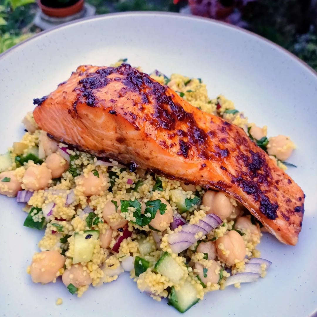 Tom Kerridge recipe but I replaced the salmon with Trout. The Ottolenghi Harissa made it extra special