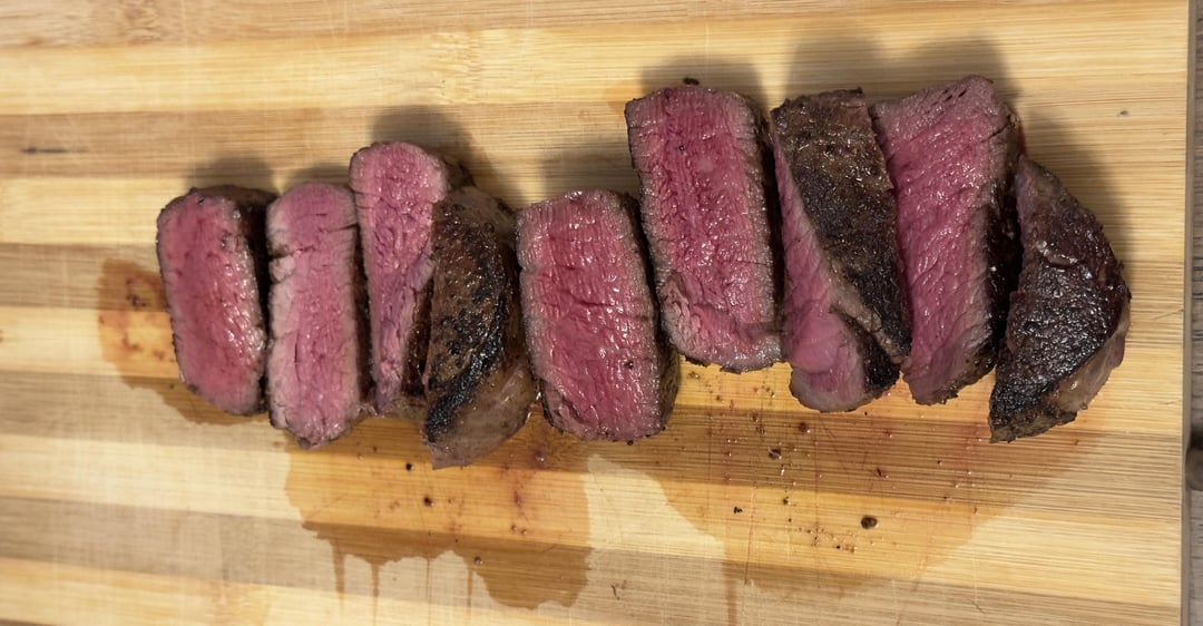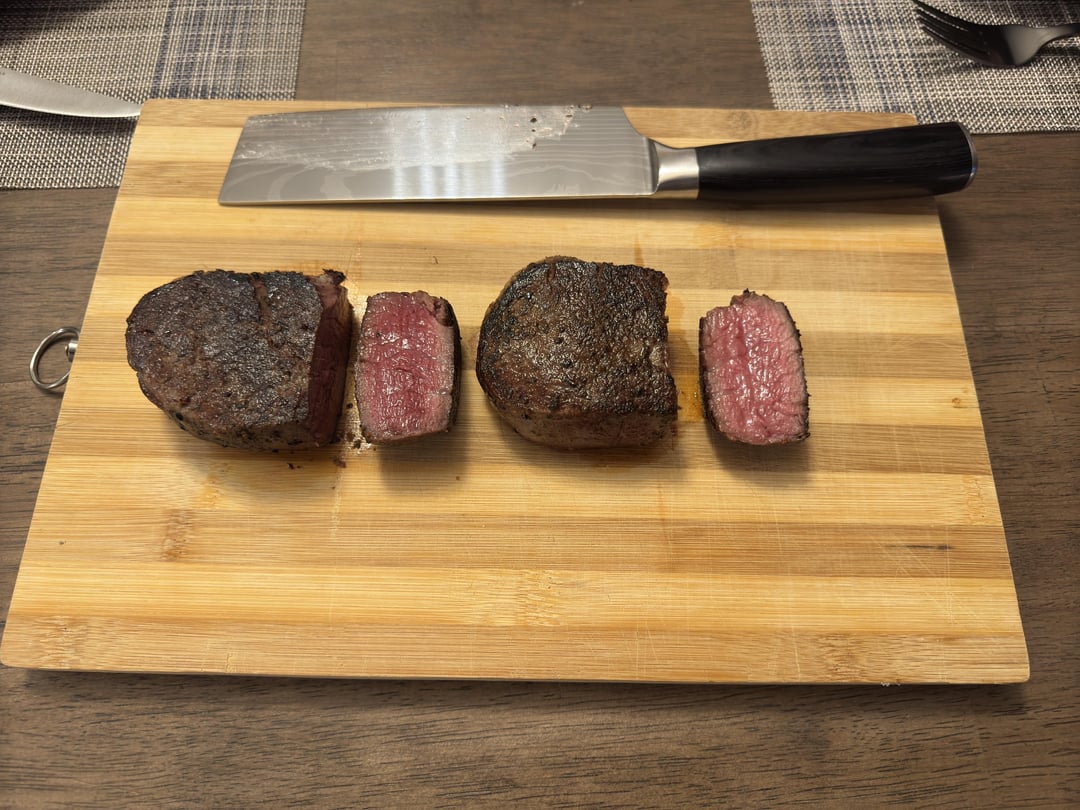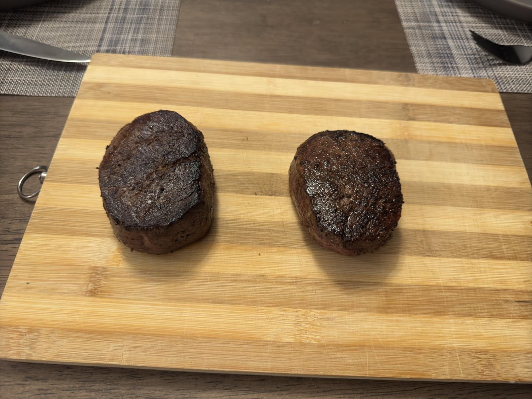 129 for just over an hour, pat dry, fridge to rest for 10 minutes, then the thinnest layer of Kewpie mayo for crust. Sear in flat cast iron pan. Delicious.