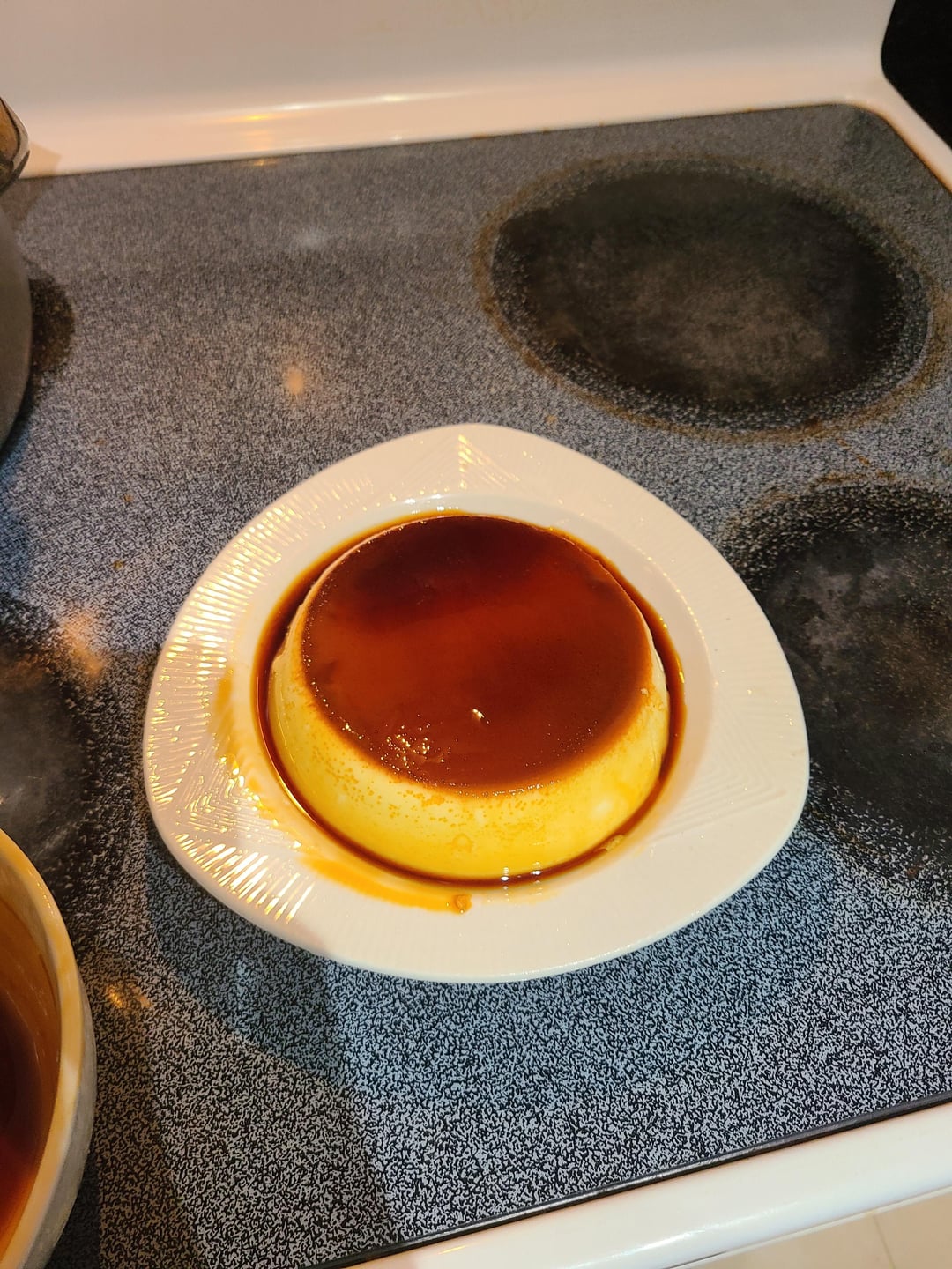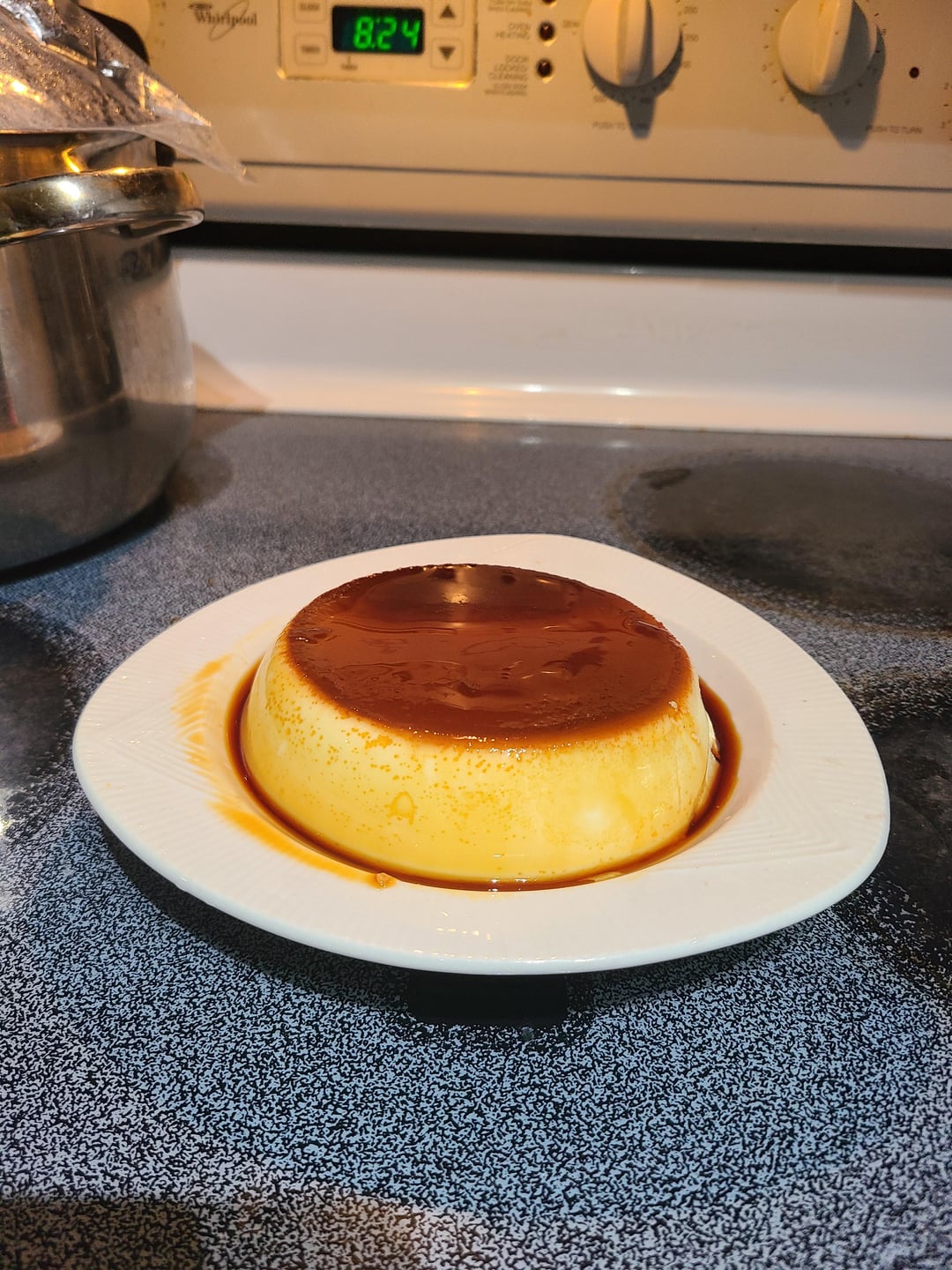 Last time I made it, I used a double boiler in the oven. I put too much orange zest in it, that was a Mexican flan recipe. It was way too orangey but the next day it mellowed considerably.