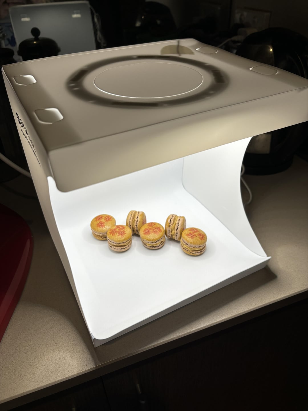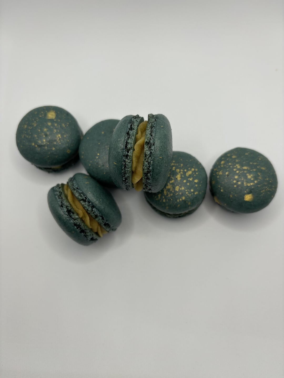 French method macs with painted on designs (gel colour + vodka). In hindsight I should not have brushed the whole shell to acheive that “egg-wash” look… I lost a few tops while taking the photos because they’ve gotten too soft 😔
