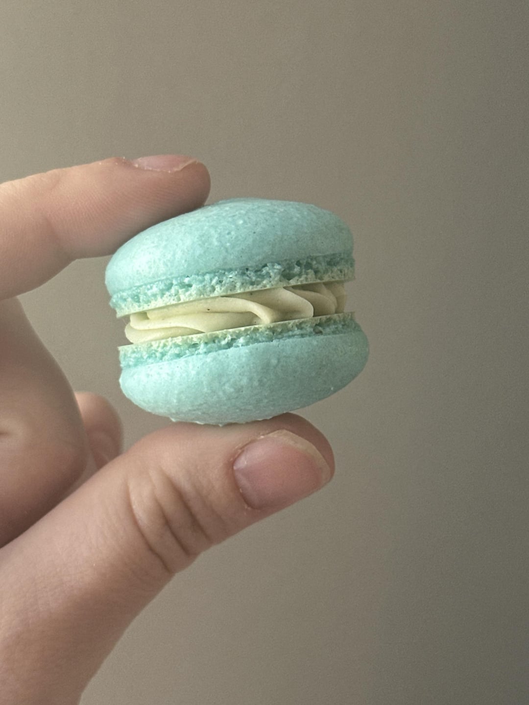 my shells are obviously looking much better than my first attempt but sadly they were hollow. I’ve read a lot of people suggest only beating to birds beaks instead of stiff peaks, but when I did that they came out like my last post. I lowered my oven temp (I believe it runs hotter than it should) and beat to stiff peaks and macronaged less (maybe could’ve gone a little longer) and these blue ones were the result. a better looking macaron but sadly still hollow. any recommendations or suggestions on how I can fix this? and if anyone can explain how the altitude affects baking like this, I’d really appreciate it bc I can’t even make chocolate chip cookies successfully anymore 😅 lol
