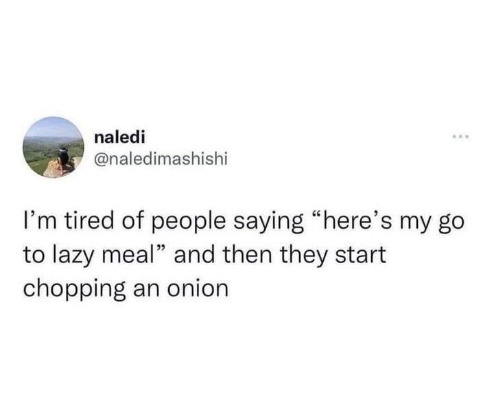 Do they not like onions, or are they so fucking lazy they think chopping an onion is work? Both are pathetic.