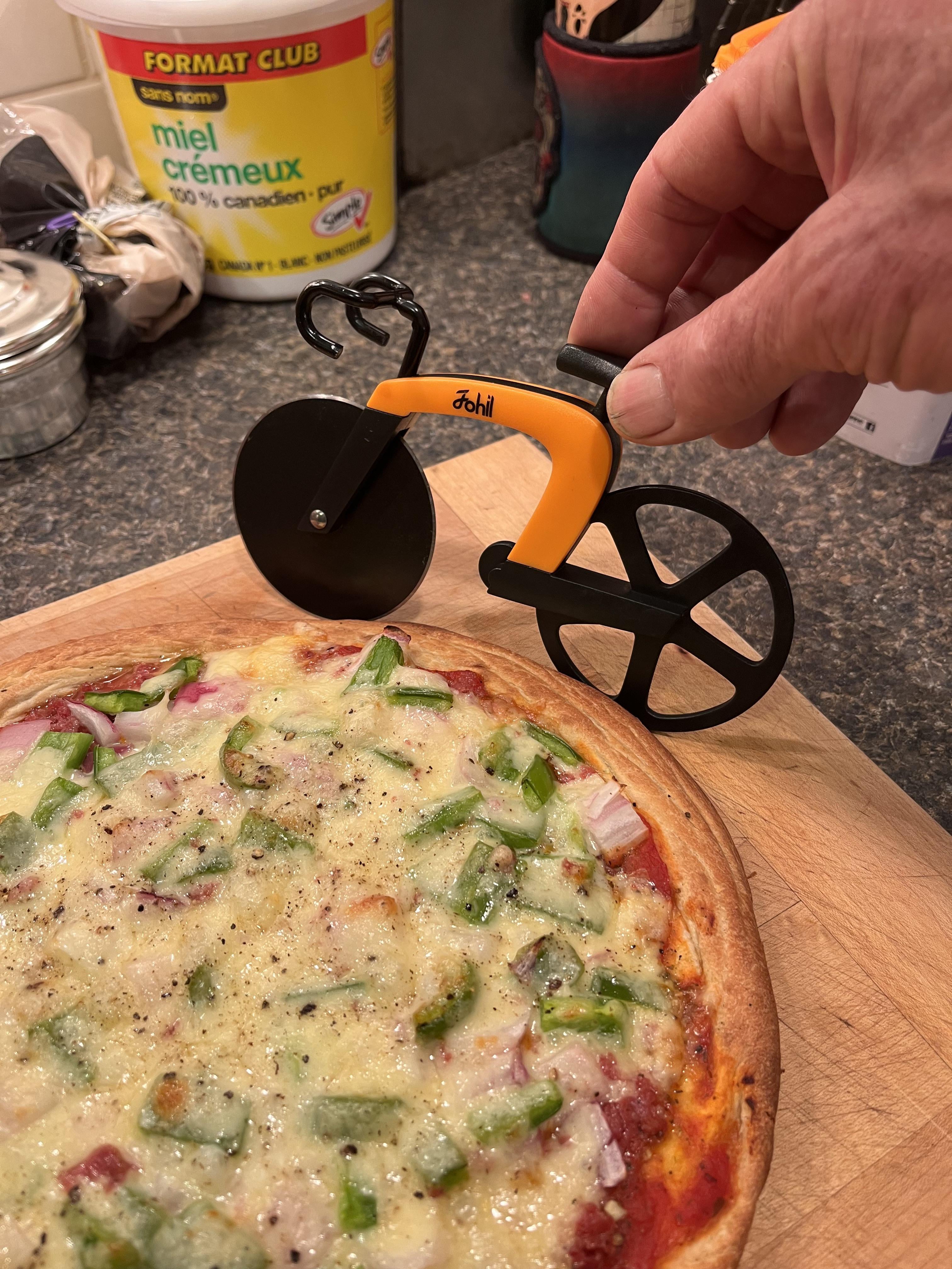 have a similar thing, funny to watch, but does not work for cutting pizza