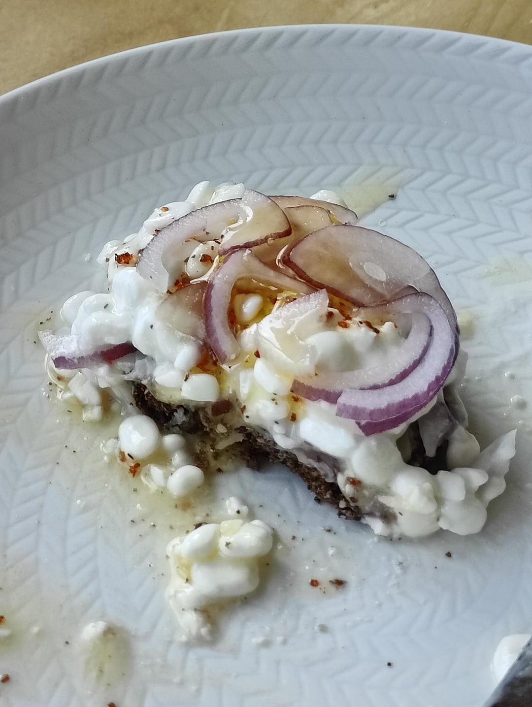 My craving today. Toasted rye bread, red onion, cottage cheese, honey, tajin spice (chilli & lime), flaky salt, more red onion. So good.by SwrileyJones Write A CommentYou must be logged in to post a comment.