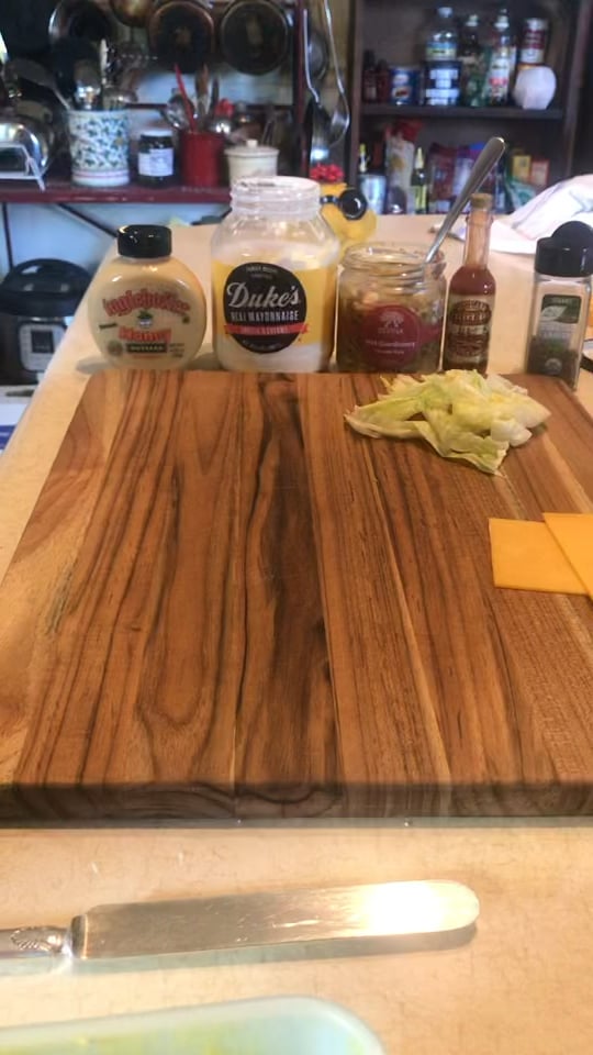 The dip of that knife into the mayo after the butter and scraping it all over the bread, however, is a recipe for crumby mayo.
