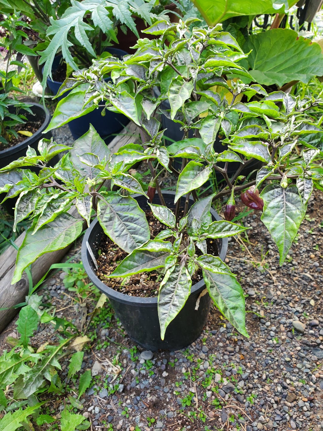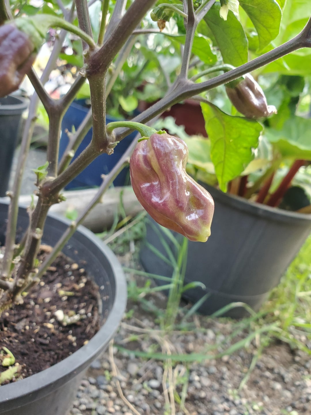 This was supposed to be Devil's Tongue Orange Peach (Devil's Tongue x Sugar Rush Peach). The pods are supposed to have begun green – they've begun purple. Any ideas?