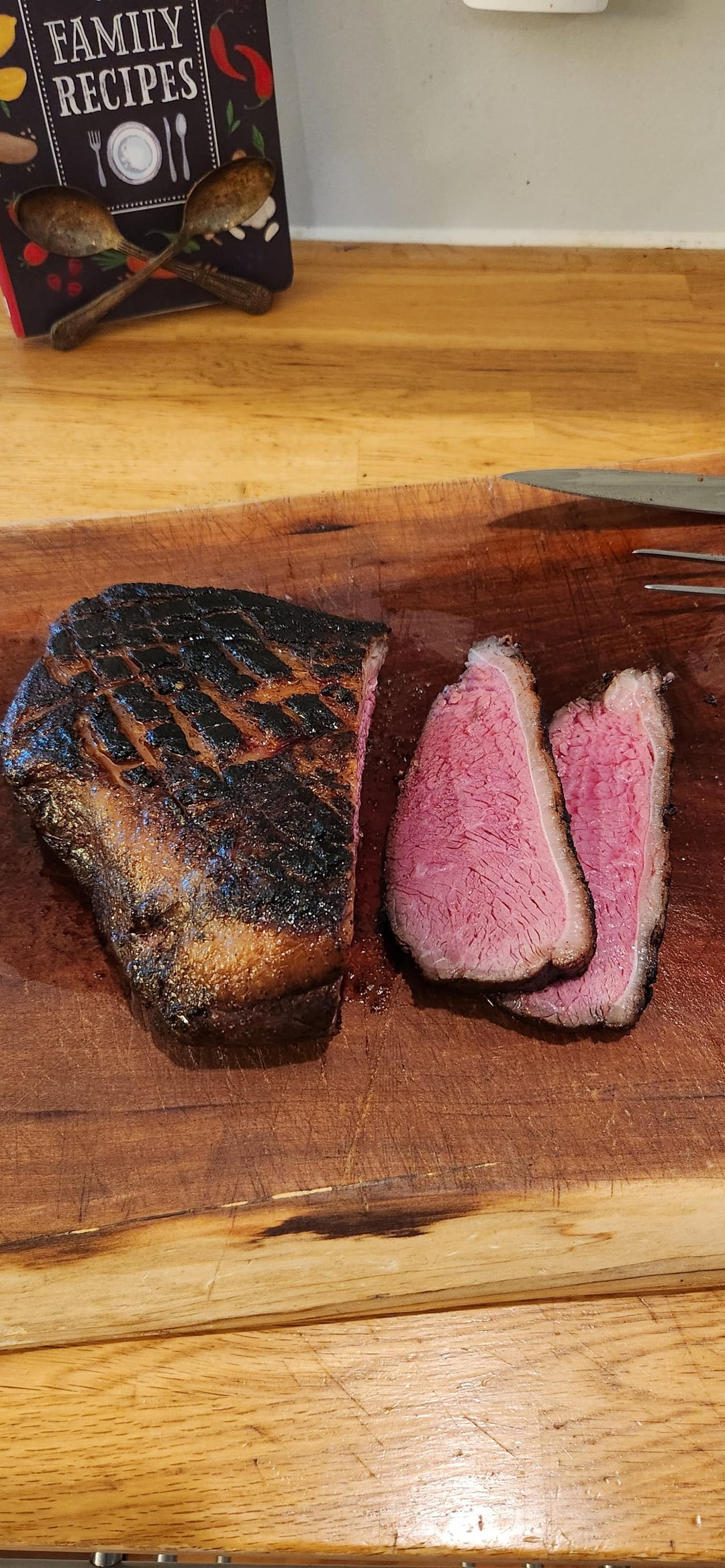 Pros: Seasoning was excellent (IMO), doneness was the perfect medium rare that I prefer, texture and flavor of the sear were on point. Lots of praise from my wife, friend, and beloved dog who all enjoyed it.
