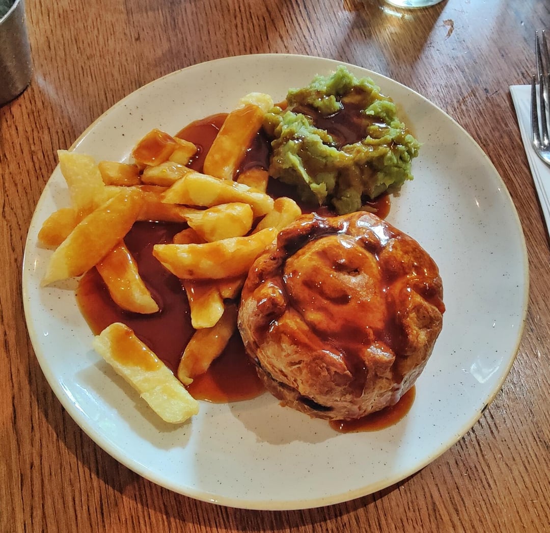 Steak and mushroom pie, mushy peas, chips and gravyFollowed by chocolate brownie and cookie dough knickerbocker gloryNow fullMay need a snooze by sastb Write A CommentYou must be logged in to post a comment.
