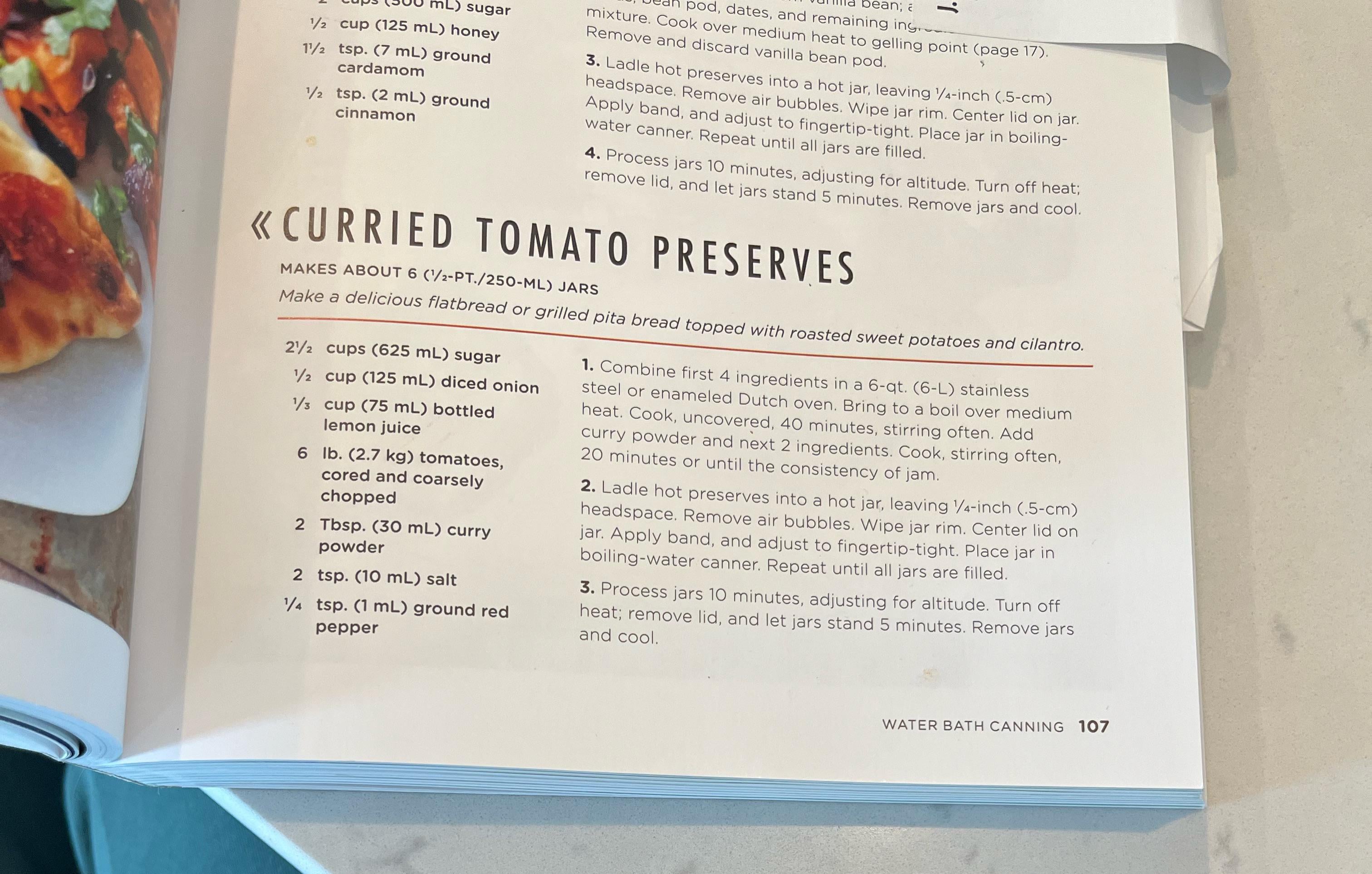 Hi all – question for you! I am currently making the curried tomato preserves from the All New Ball Book of Canning and Preserving and noticed skins are left on. Why is this ok but skins left in sauce or diced tomatoes aren’t? Pic of recipe included (it’s SO GOOD)