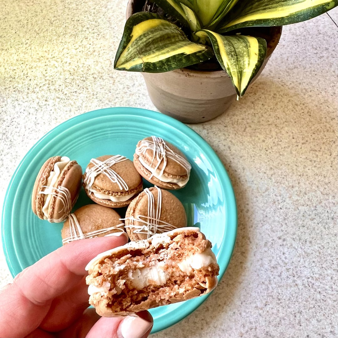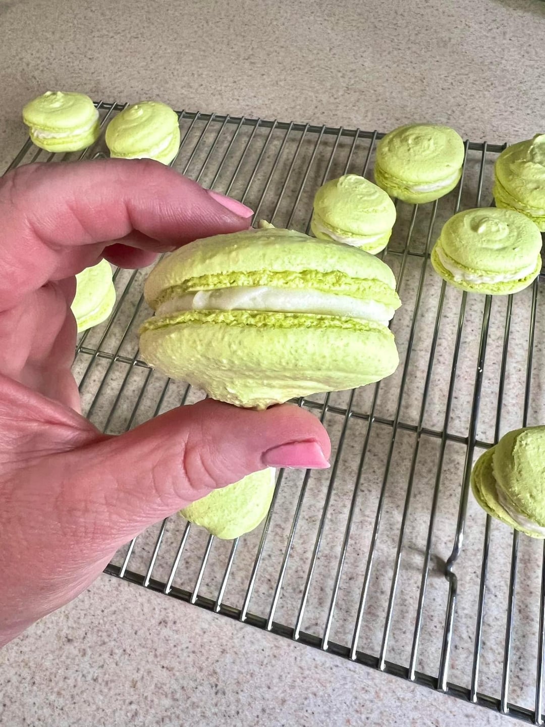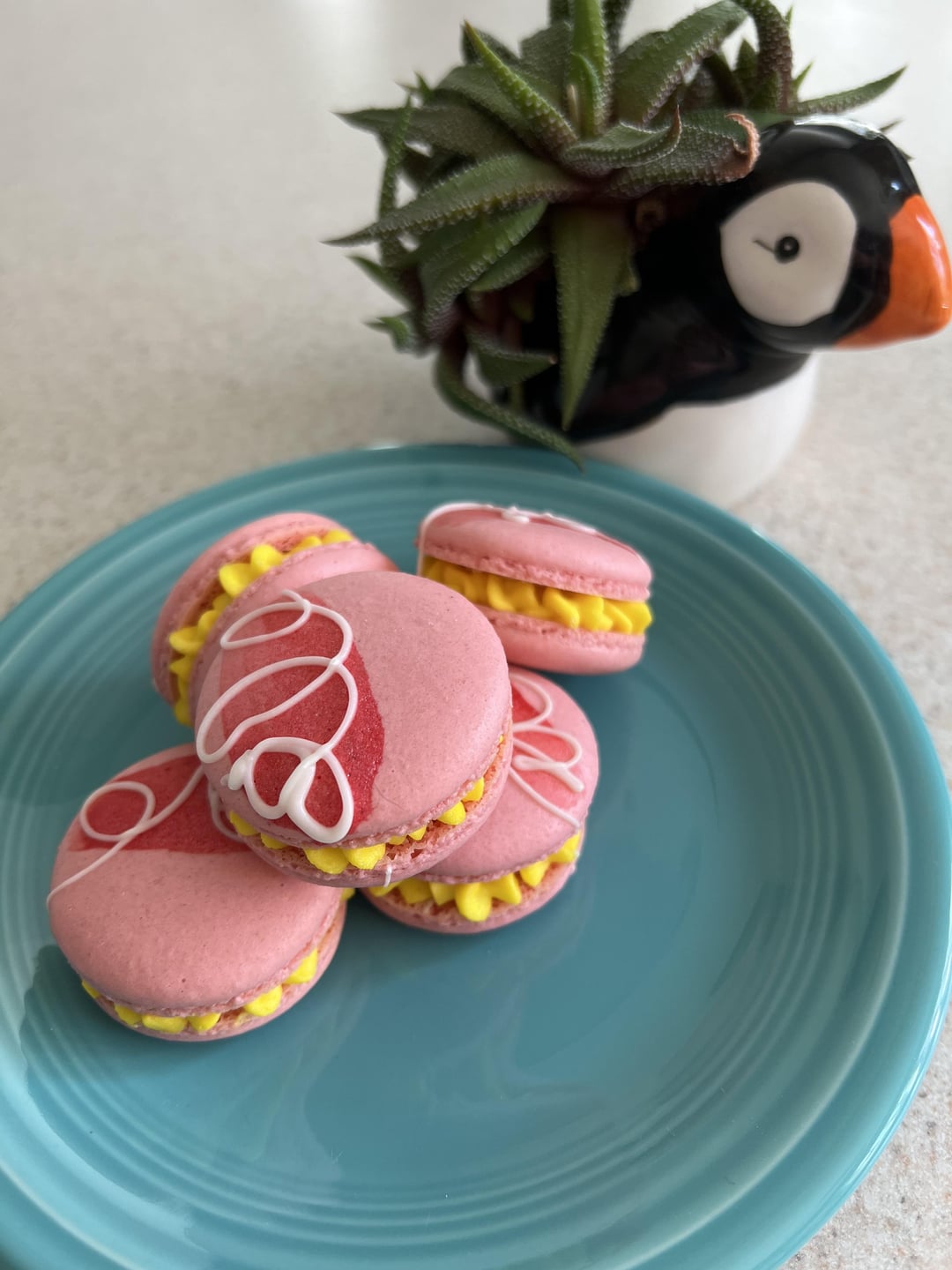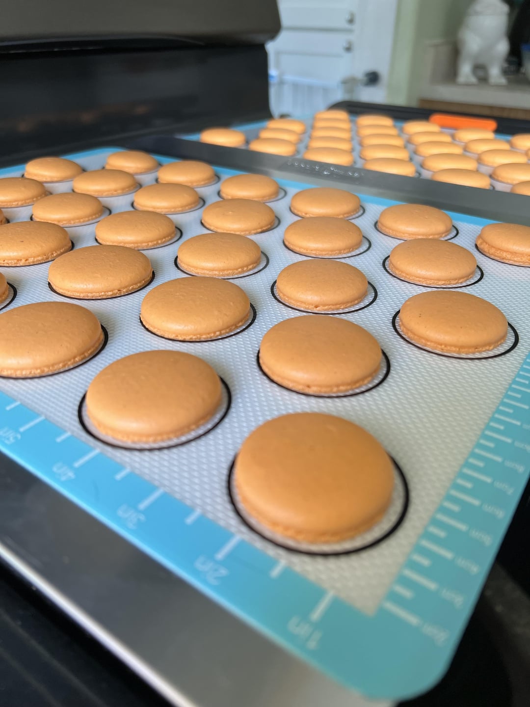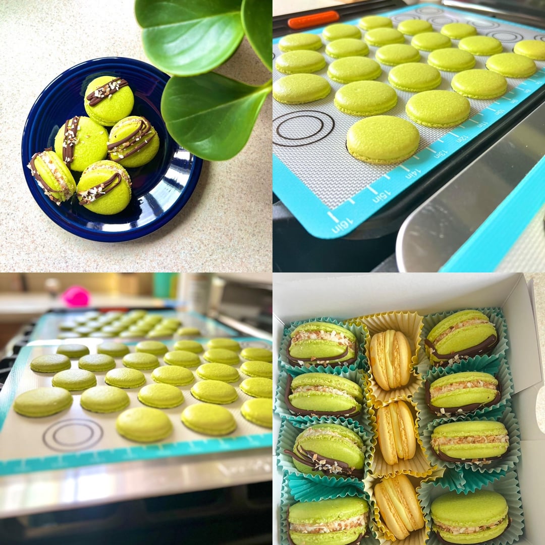 Started making macs in March when I ordered some Pandan extract. They looked appalling, but tasted delicious. I’ve adjusted recipes and temperatures, with many failures, but have finally found a formula that works for me! I would like to get them a little “poofier” if anyone has any ideas? I use Preppy Kitchen’s recipe and add 5g of egg white powder (I might try adding more) and bake at 295°.