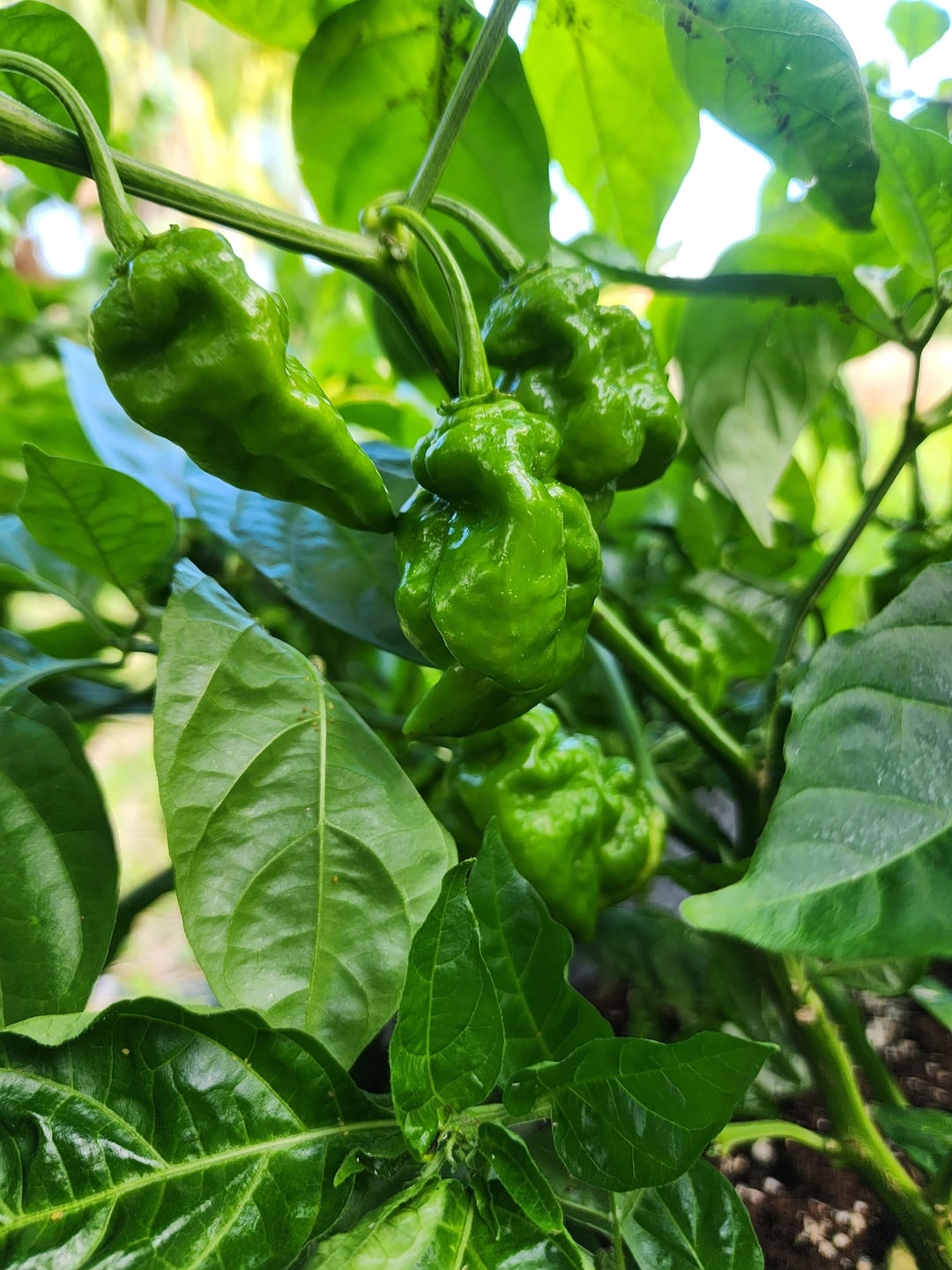 I planted 4 "death dragon" plants in a 15 gal cloth pot. 3 of them are producing peppers like the first picture and one plant is producing the peppers in the second picture. I honestly don't even know what a death dragon pepper is supposed to look like but that second picture looks a lot like a reaper to me.