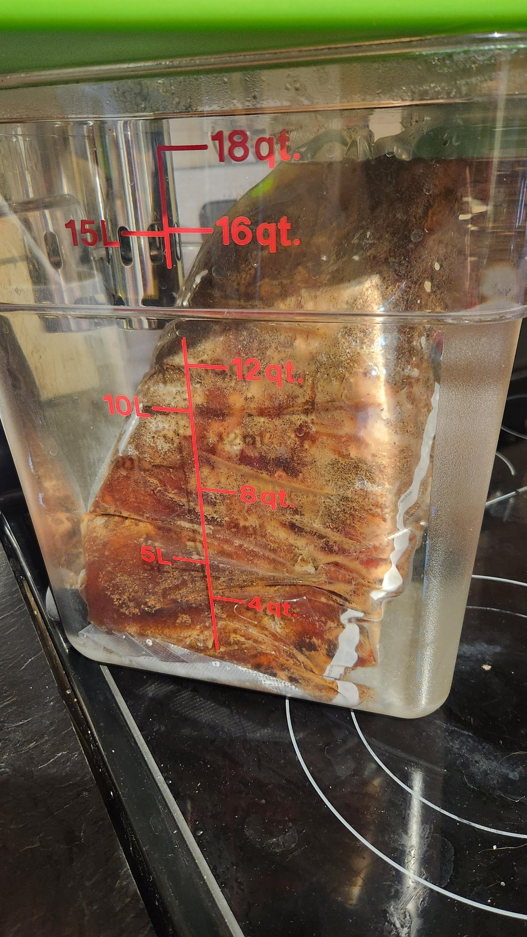 I then sealed and put in the bath for 24 hours at 135⁰f then 155⁰f for 12 hours