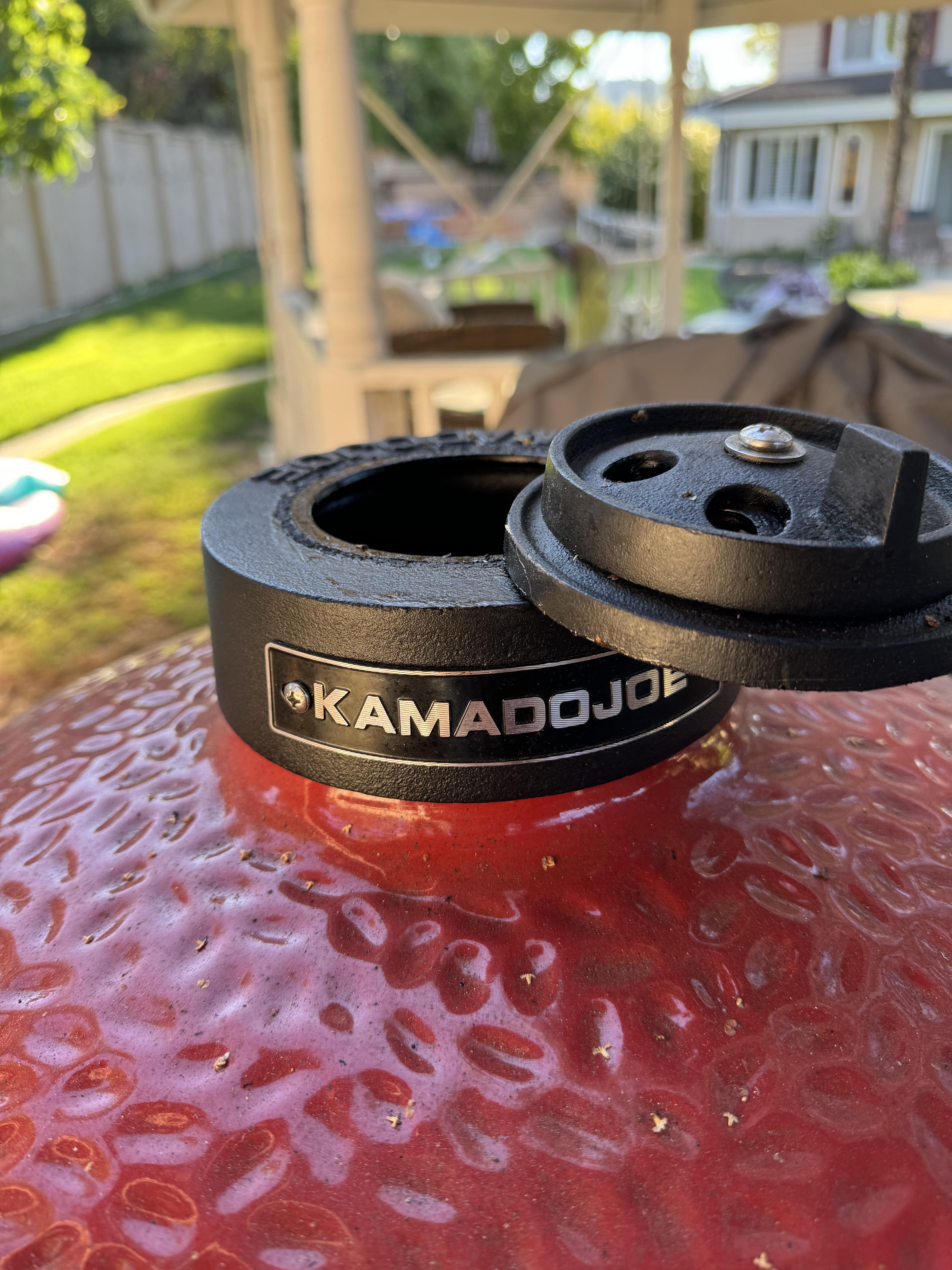 [smokeware chimney cap](https://www.amazon.com/SmokeWare-Vented-Chimney-Cap-Kamado/dp/B00ZAMY8F6/ref=mp_s_a_1_1?crid=AMV1QS9CB3W3&dib=eyJ2IjoiMSJ9.VS5uwF10DquC4_Zp6Pr443ElVKgxQUmp_GX4Tf_bk8wD9t96ZtRU3Yu9Uk0qEwbojusK2wx8rhyl1Tv4hcADC4QWpwlYIeZdRlt-ZMTDYN7dpyeF0nLhaurYEwExHbLKkOuCHpxGXQ-h5M934nWXCeIKDzyrva3bfVTXQ65ncMUkxvN8w3JI1GP3YF7t4t6qrnnk3b8jTZAEBXhDBNccQA.DwIQ0MYVpBoXittHIn0Xncx9AgfLiP2vrB-3inlKxSQ&dib_tag=se&keywords=smokeware+chimney+cap+kamado+joe&qid=1725820263&sprefix=smokeware+ch%2Caps%2C119&sr=8-1)