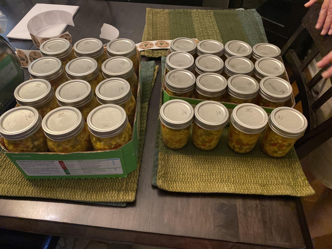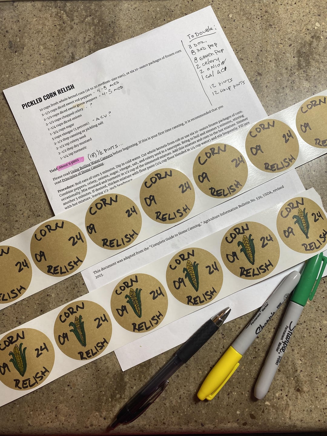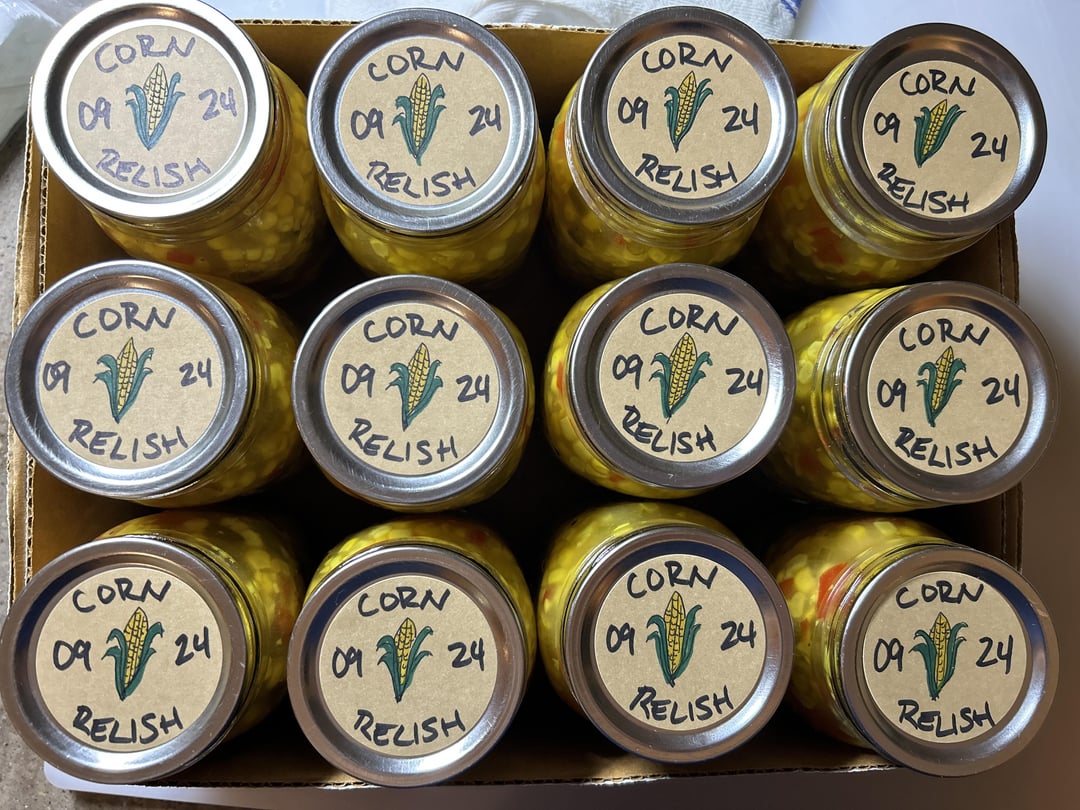 This is one of our favorite recipes to make with late-summer sweet corn. We doubled it and ended up with 12 pints and 16 ha’pints.