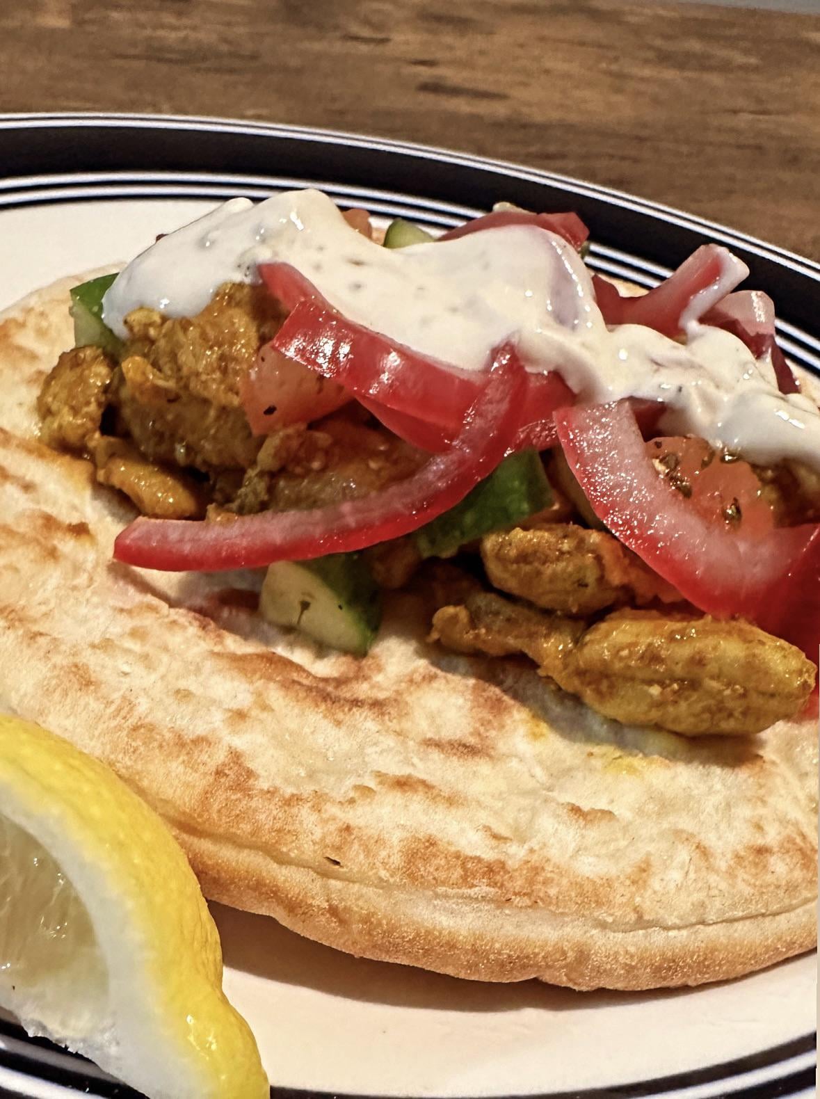 The portion size was great. It honestly made enough chicken and toppings for 3 pitas, so I was able to load mine up really well. I was a bit afraid the pita bread would be dry/tough, but was pleasantly surprised that it was soft and tasty once microwaved in a damp paper towel. I loved every element of this dish and will be ordering again once it goes back on rotation.