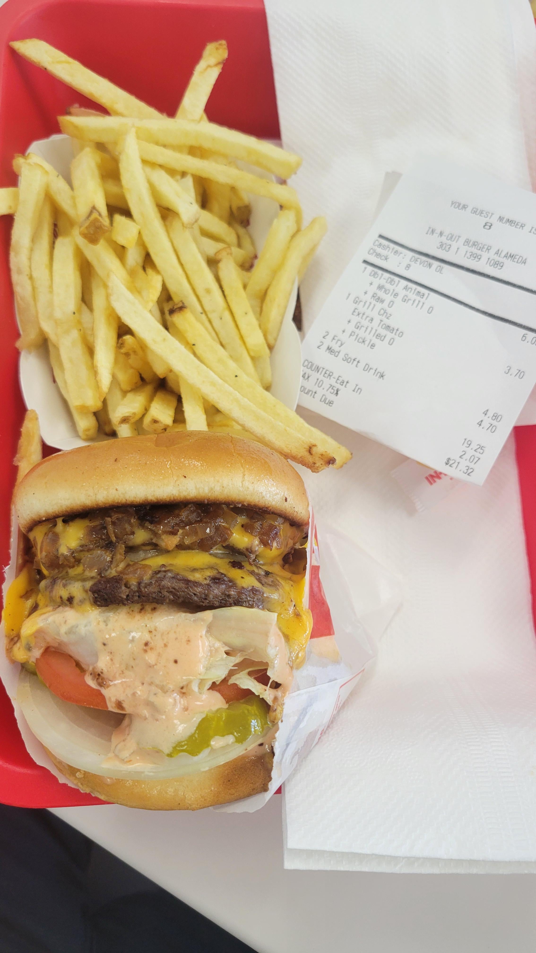 In n Out does caramelized onions better than any other fast food, Double Double with just spread, ketchup, caramelized onions is heavenly.