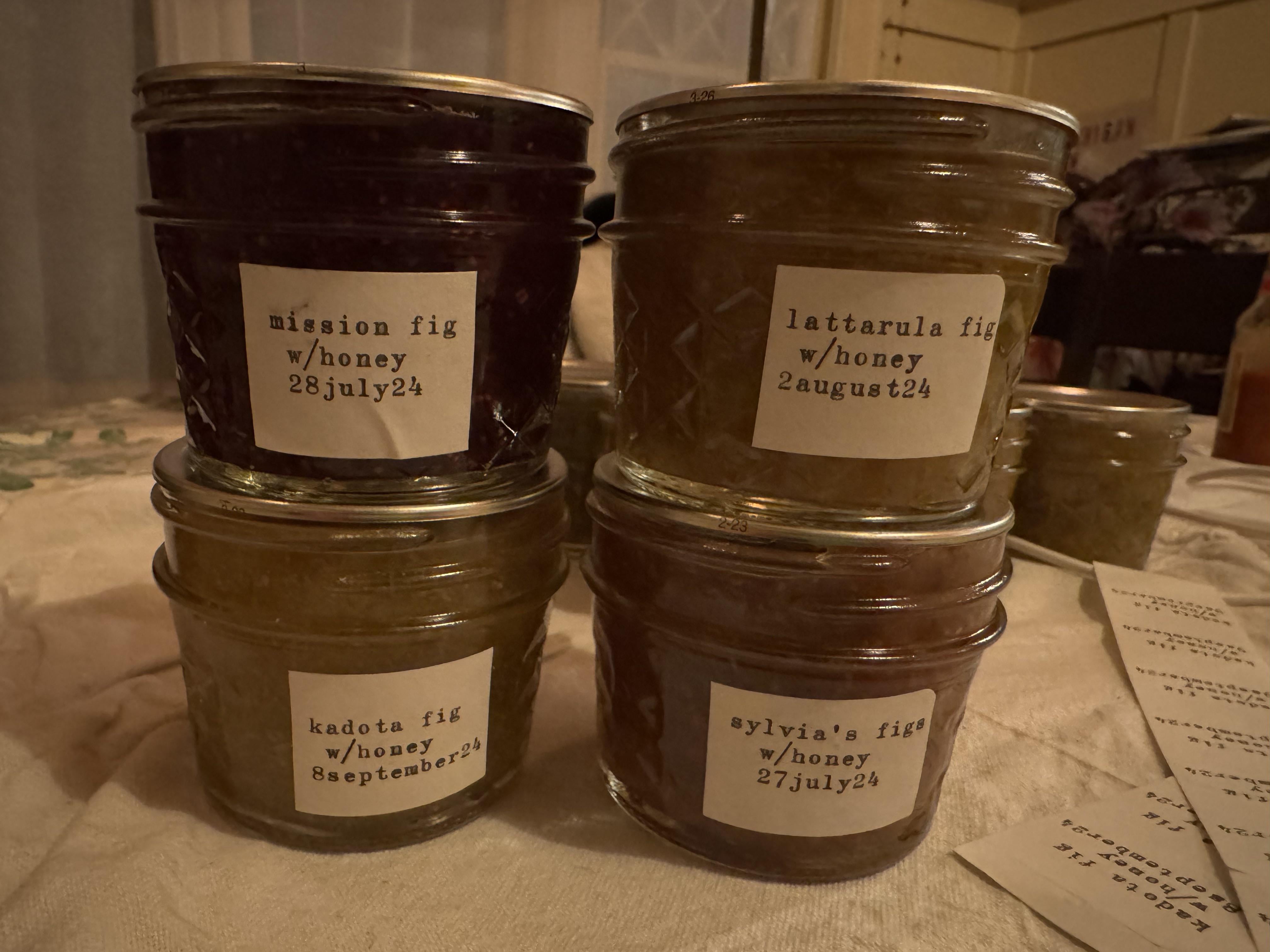 Hi all! I just canned my fourth variety of fig jam for the summer, after starting canning in July. The best part is that each variety comes from a different neighbor who had an overburdened fig tree. I just introduced myself to the ones I hadn’t met yet, offered to share jam in exchange for figs, and made new friendly acquaintances in my neighborhood. This feels like a deeply satisfying way to do food!