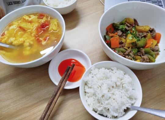 Stirred beef with bell pepper and pineapple. Soup with egg, tomato and pineapple. by Critical_Job9132 Write A CommentYou must be logged in to post a comment.