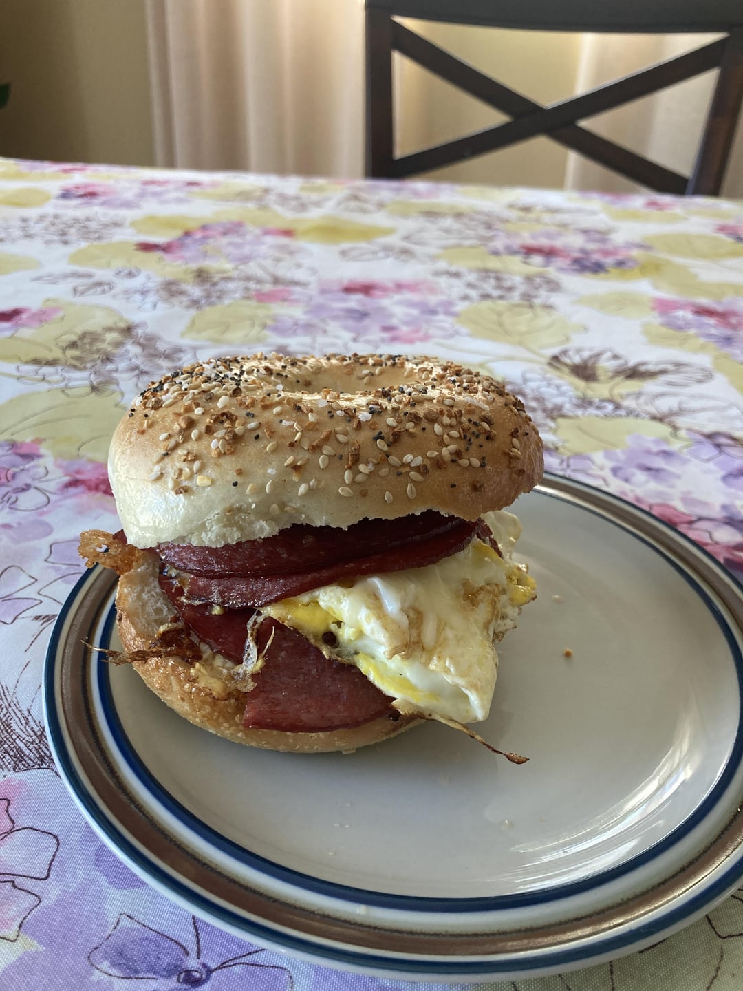 Gotta love a fresh bagel.Everything bagel with egg, cheese, ketchup, and fried Lebanon bologna. It’s like a smokey, sweet beef sausage and it’s great, especially when you’re out of bacon.by Buck_20 1 Comment lavery87 1 year ago Pork roll is 🤤Write A CommentYou must be logged in to post a comment.