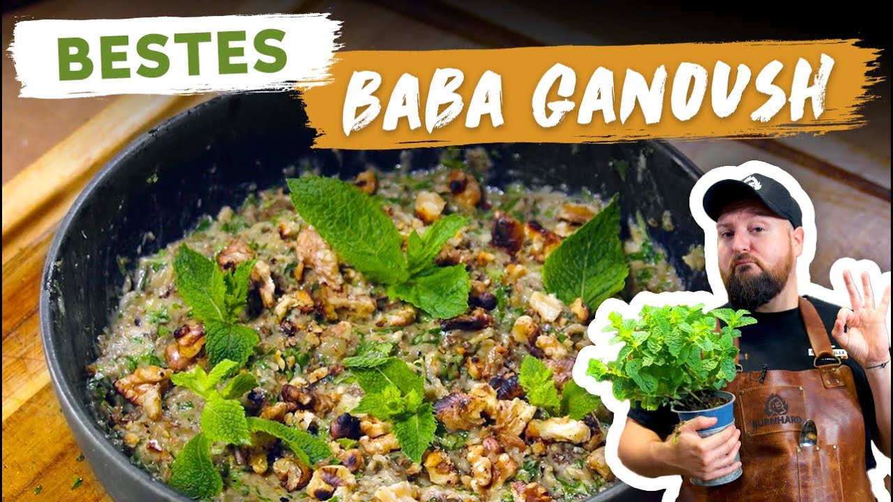 Die Hauptzutat? Gegrillte Auberginen! Auf dem Grill entwickelt die Aubergine ein richtig geil sämiges Aroma, das im Baba Ganoush unverzichtbar ist. Durch das Grillen wird die Schale der Aubergine dunkel und knusprig, während das Innere zart und cremig bleibt. Diese weiche Konsistenz ist die Basis für den Dip.