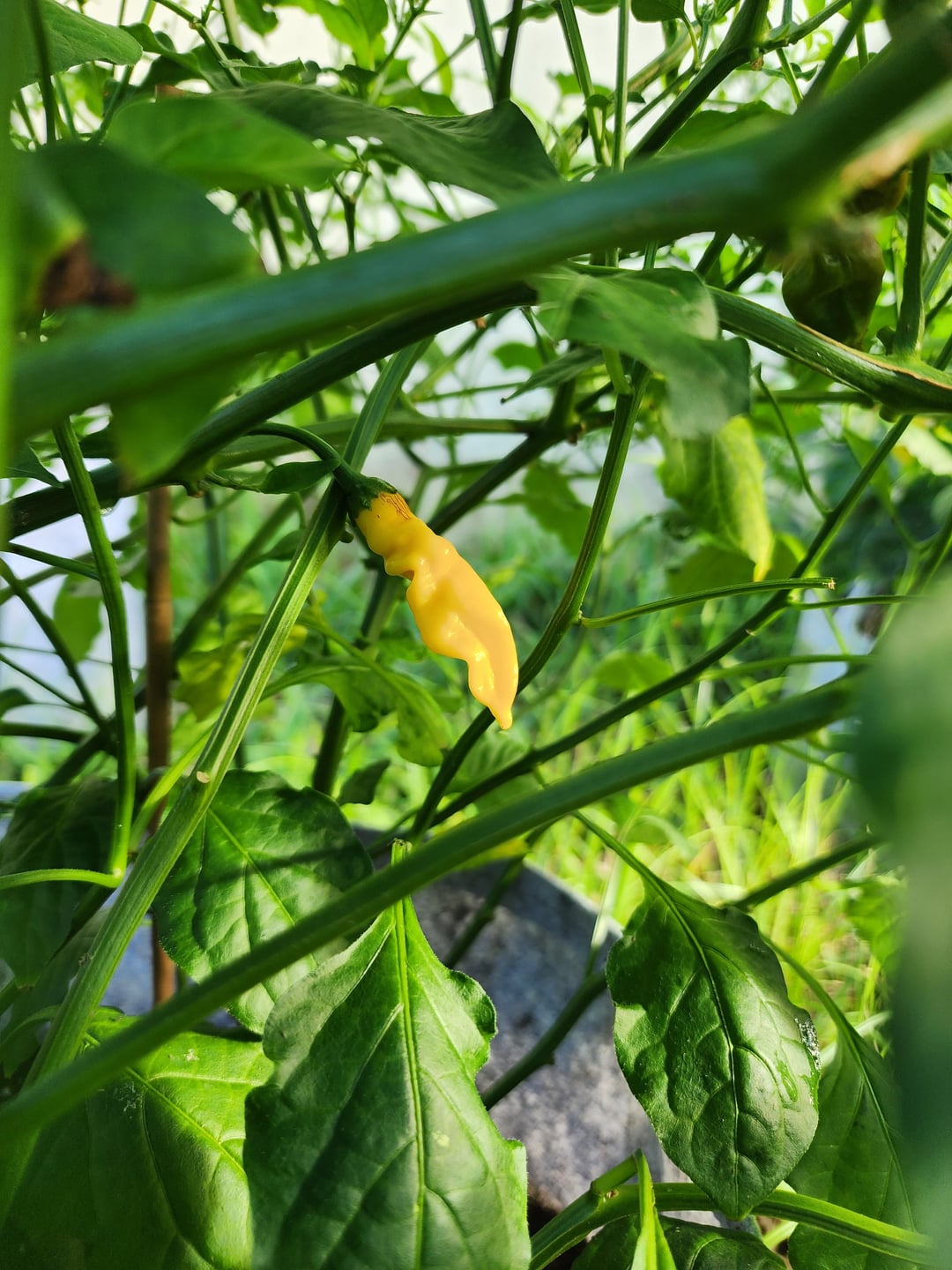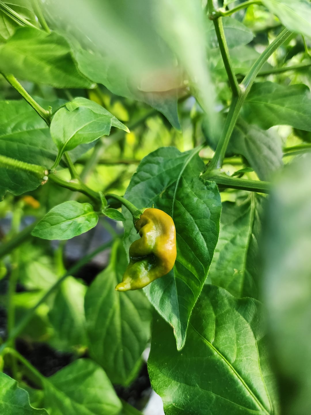 In the first picture is one of my aji mango peppers and that's the color I expected. In the second picture is another plant but they seem to be staying yellow. The pepper in the first picture went from green straight to orange unlike my habaneros which went green, yellow, then orange. In the last picture, the pepper that is ripening appears like it may be going orange, maybe yellow, but it's on the same plant as the yellow peppers. Is this normal or could I have gotten seeds of a different type of aji pepper?