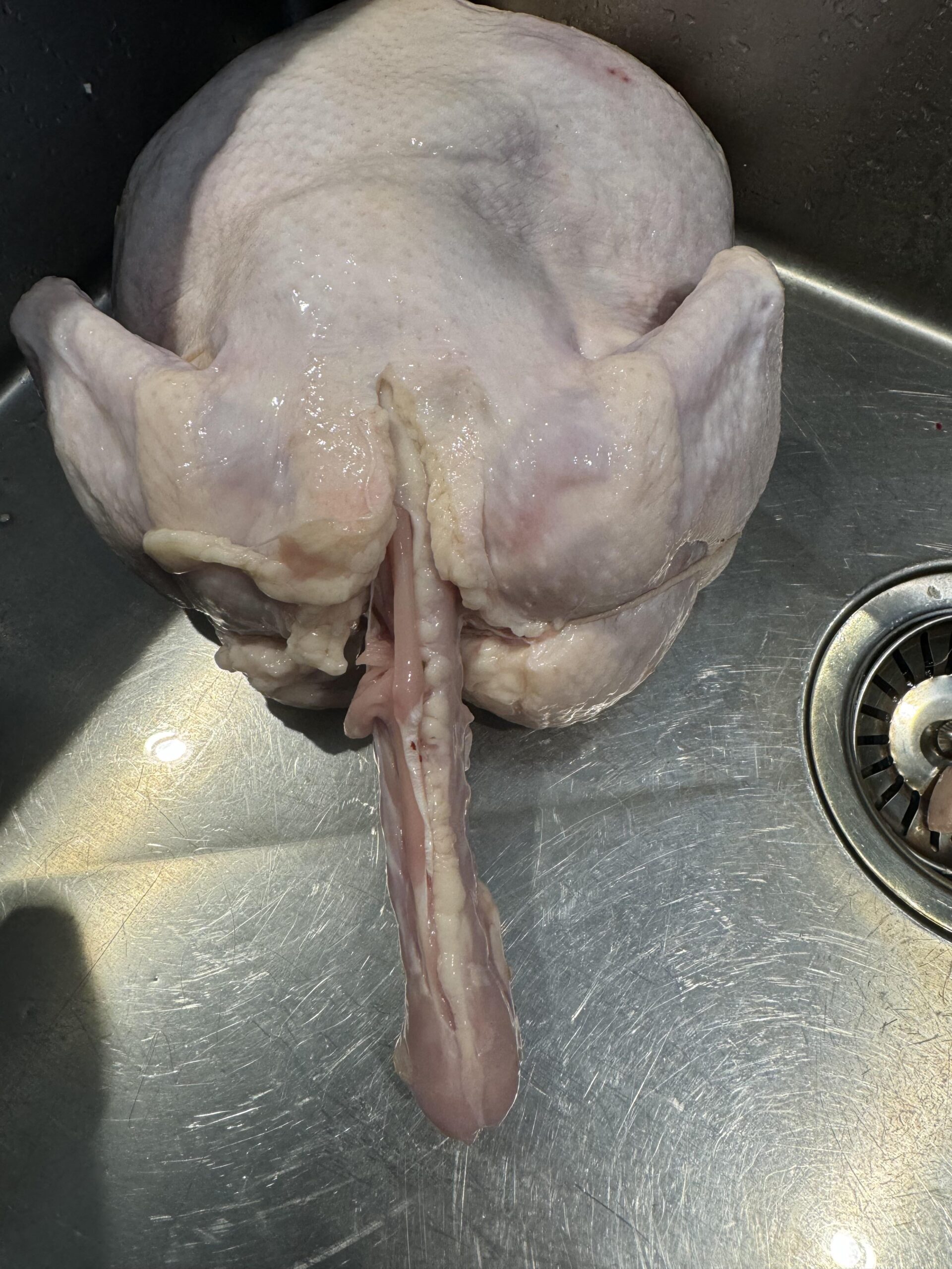 Loosing_Luis 1 year ago Spatchcock it. (Cut the spine out) and either smoke it flattened out or separate it in two half’s and smoke it that way.Save the neck and spine in the freezer for stock or throw it away.