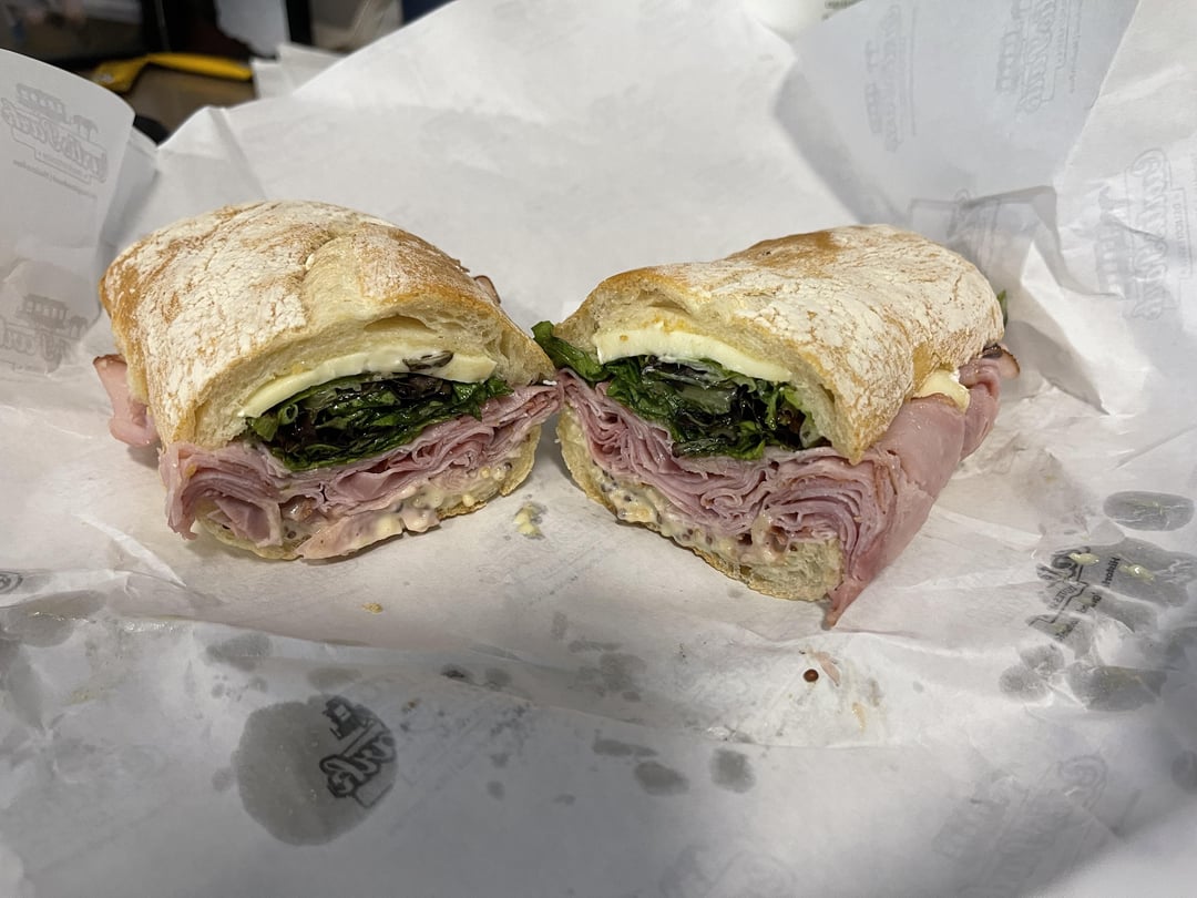 French- Niman Ranch ham (double), brie, aioli, mustard, mixed greens. Amazing as always. Greens look off, but sandwich tasted great. $17by fishforsportonly 1 Comment ToasterParking 1 year ago Whats the sauce situation?Write A CommentYou must be logged in to post a comment.