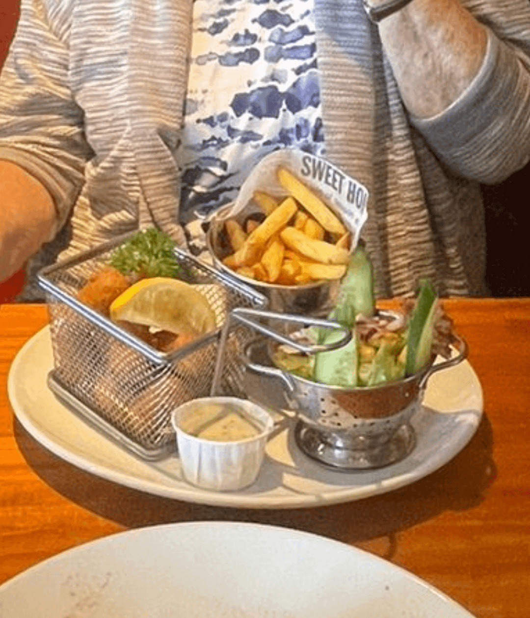 To be fair this is a setup hard to present „nicely“ on a normal plate. Plus it’s clear they want to go for the streetfood aesthetic. I think it’s nice. Only problem is that the plate does not fit the style of the rest. This may one of the very few instances where one of these wooden boards would have made more sense.
