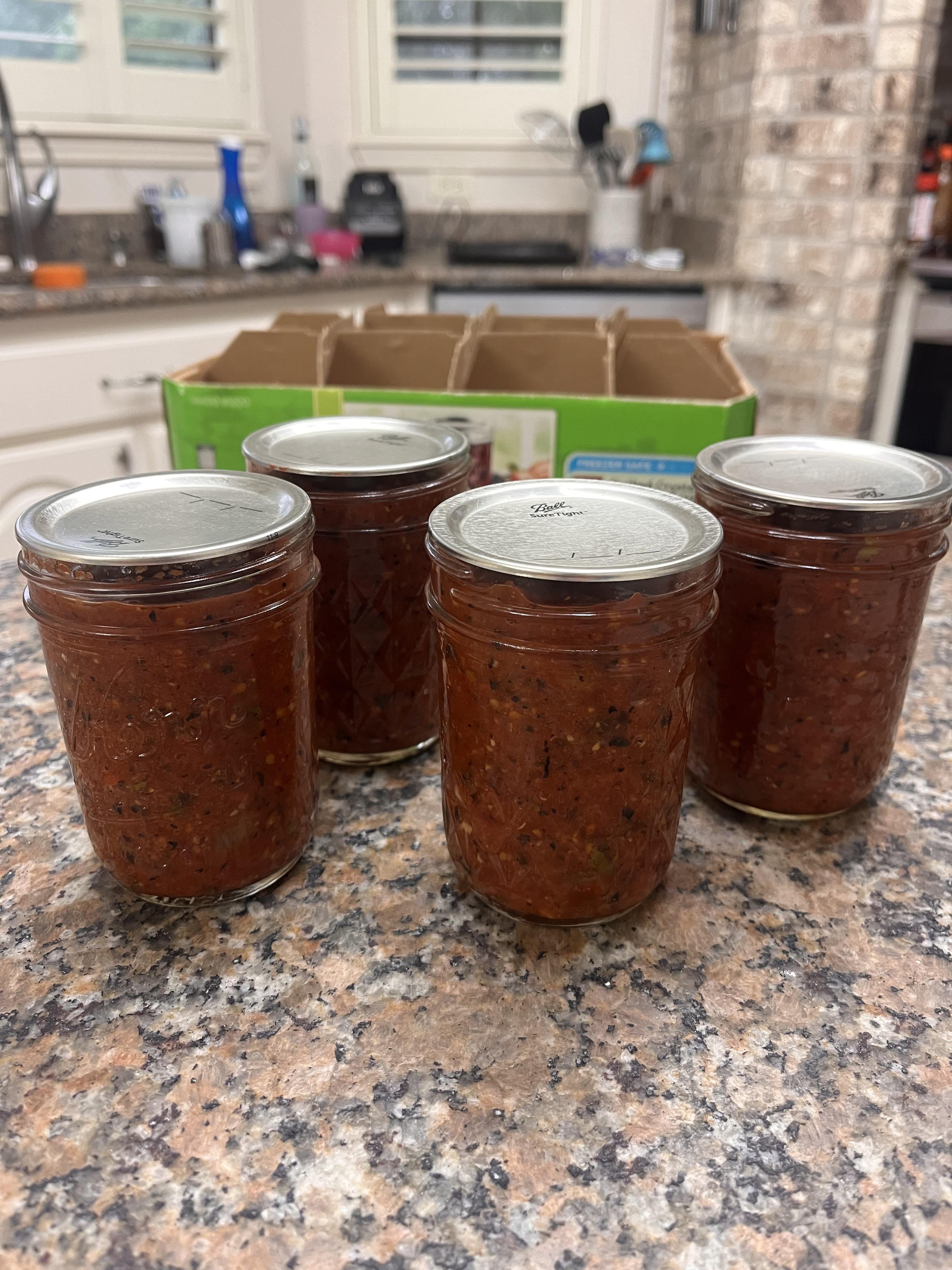 I like this recipe because it makes a small batch and the results are phenomenal. The tomatoes came from my garden.