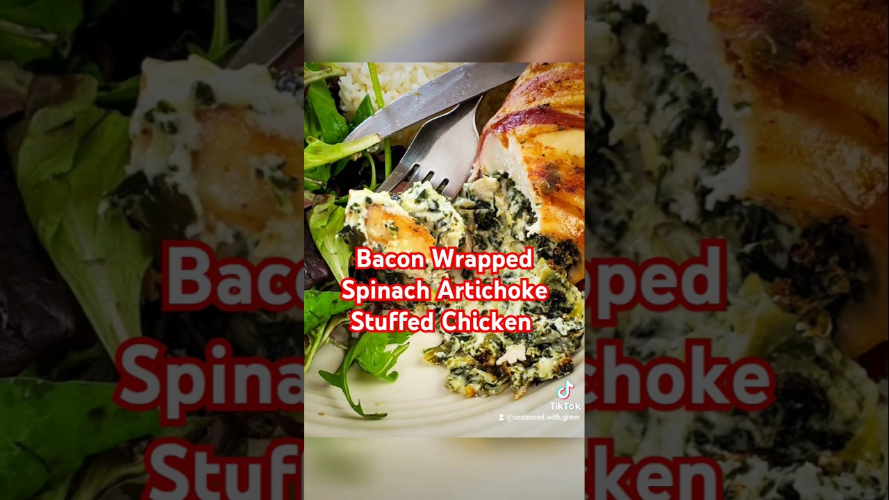 Bacon Wrapped Spinach Artichoke Stuffed Chicken!