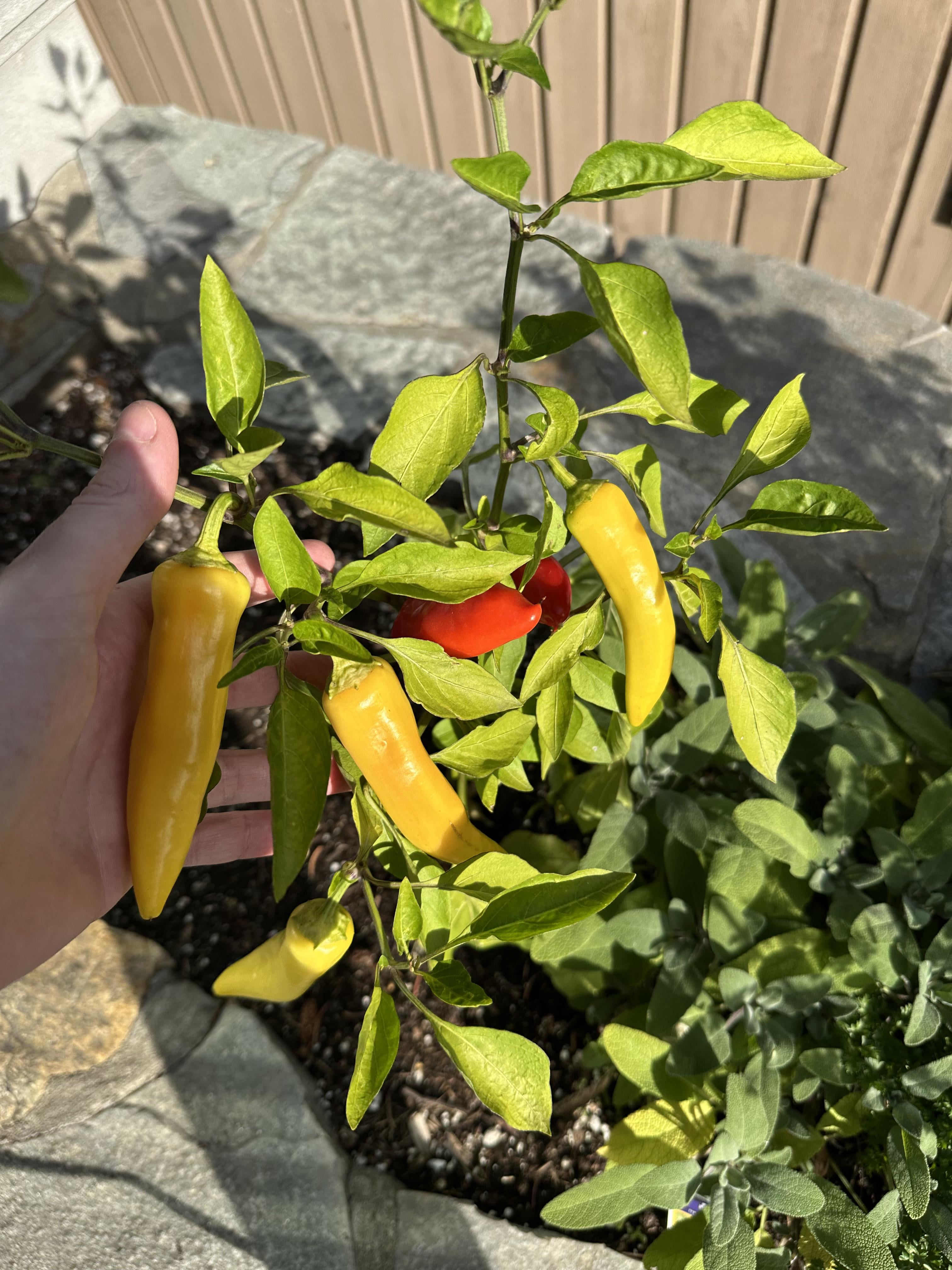 Mum planted what she thought was Hungarian sweet peppers but these are very spicy. by bobbyturkelino Write A CommentYou must be logged in to post a comment.