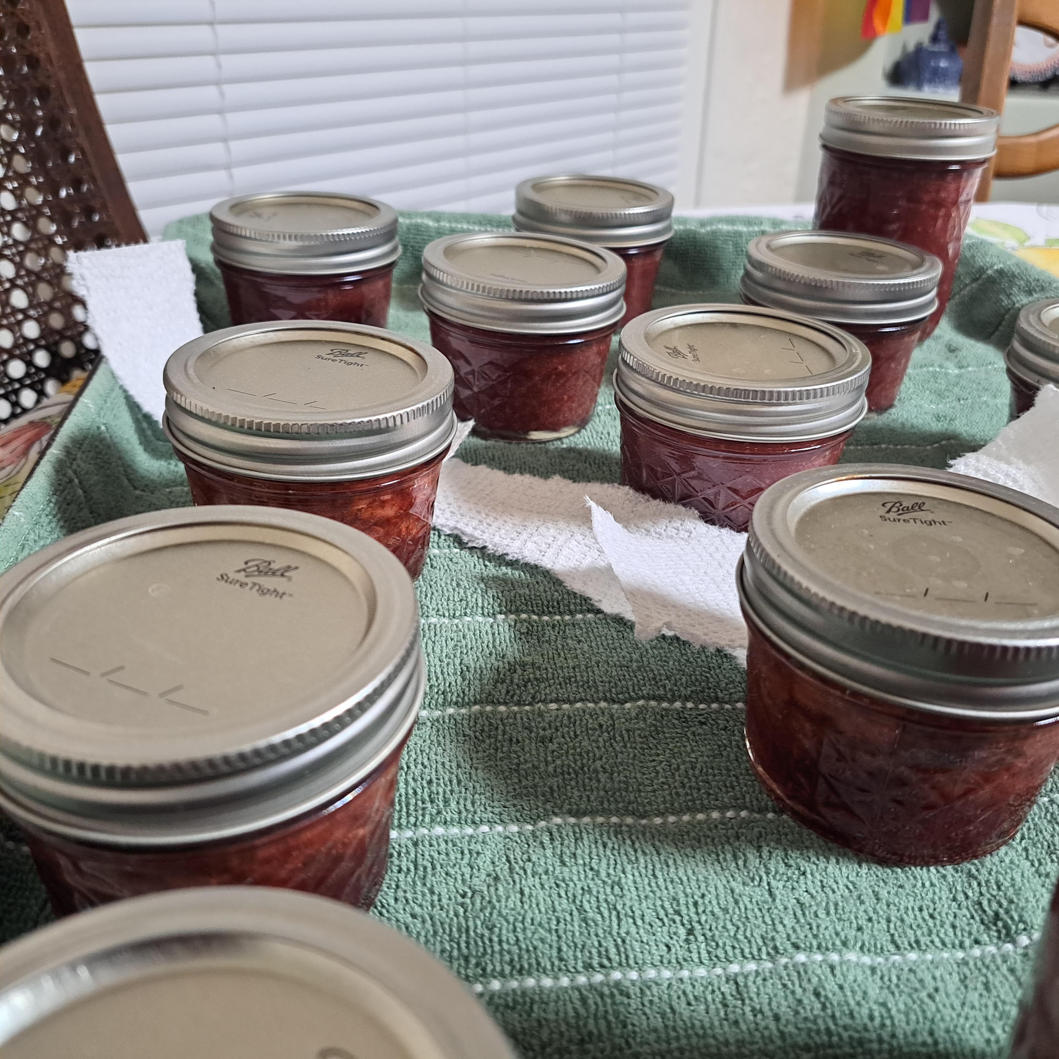 Strawberry balsamic jam (based on the Pomona pectin base recipe for berries) – https://pomonapectin.com/balsamic-vinegar-jams/
