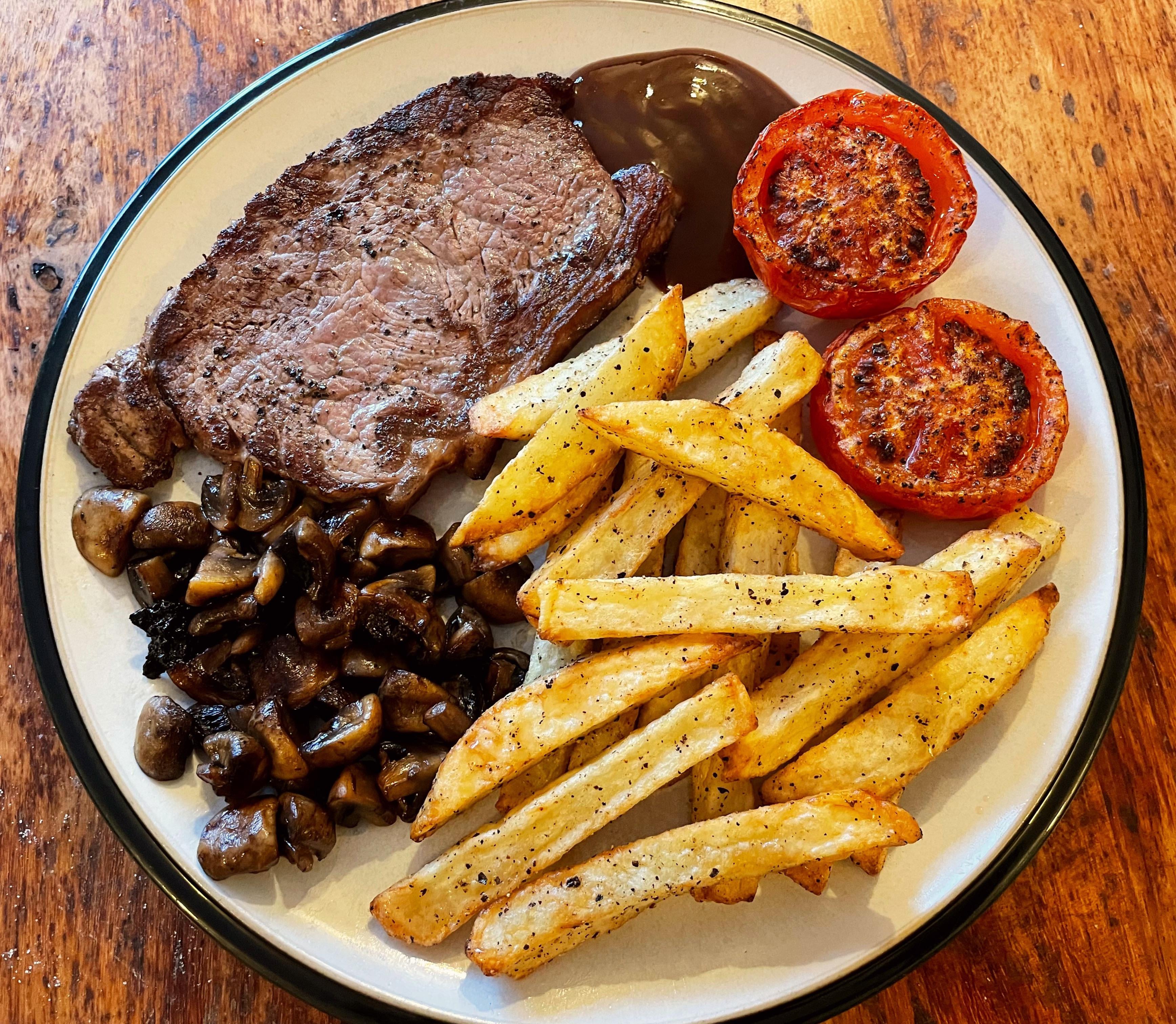 Steak with homemade chips, fried mushrooms & grilled tomatoes.by gibgod Write A CommentYou must be logged in to post a comment.