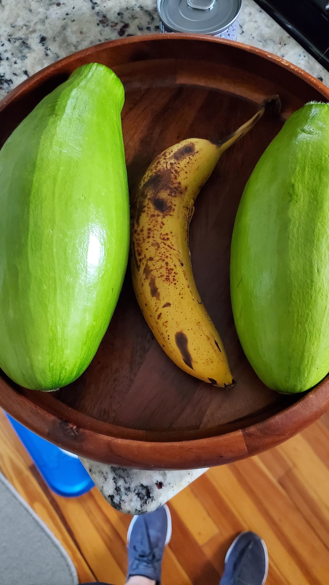 My neighbor just dropped off this lovely pair of Korean squash. Recipes are welcome.